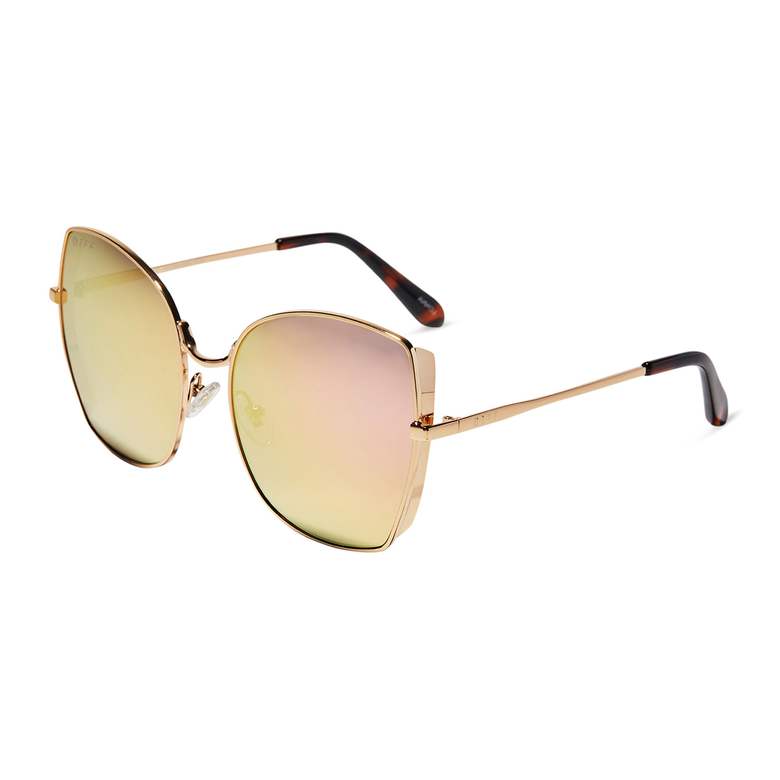 DIFF Lonna Gold Cherry Red Mirror Sunglasses