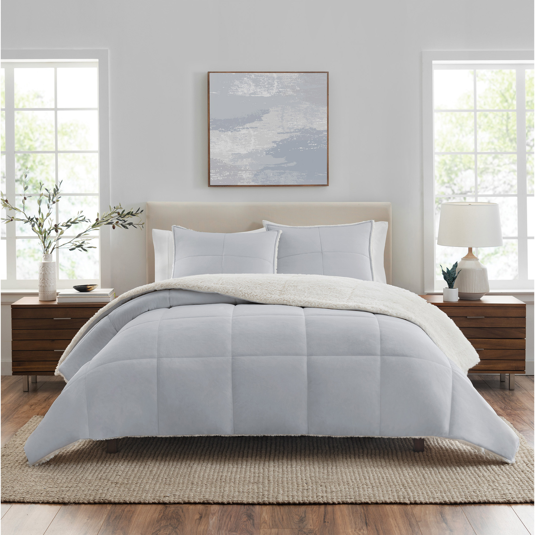 Add cozy comfort and elevated design with the Easton 3-Piece Comforter Set. The soft micro-mink face reverses to plush Sherpa fleece.