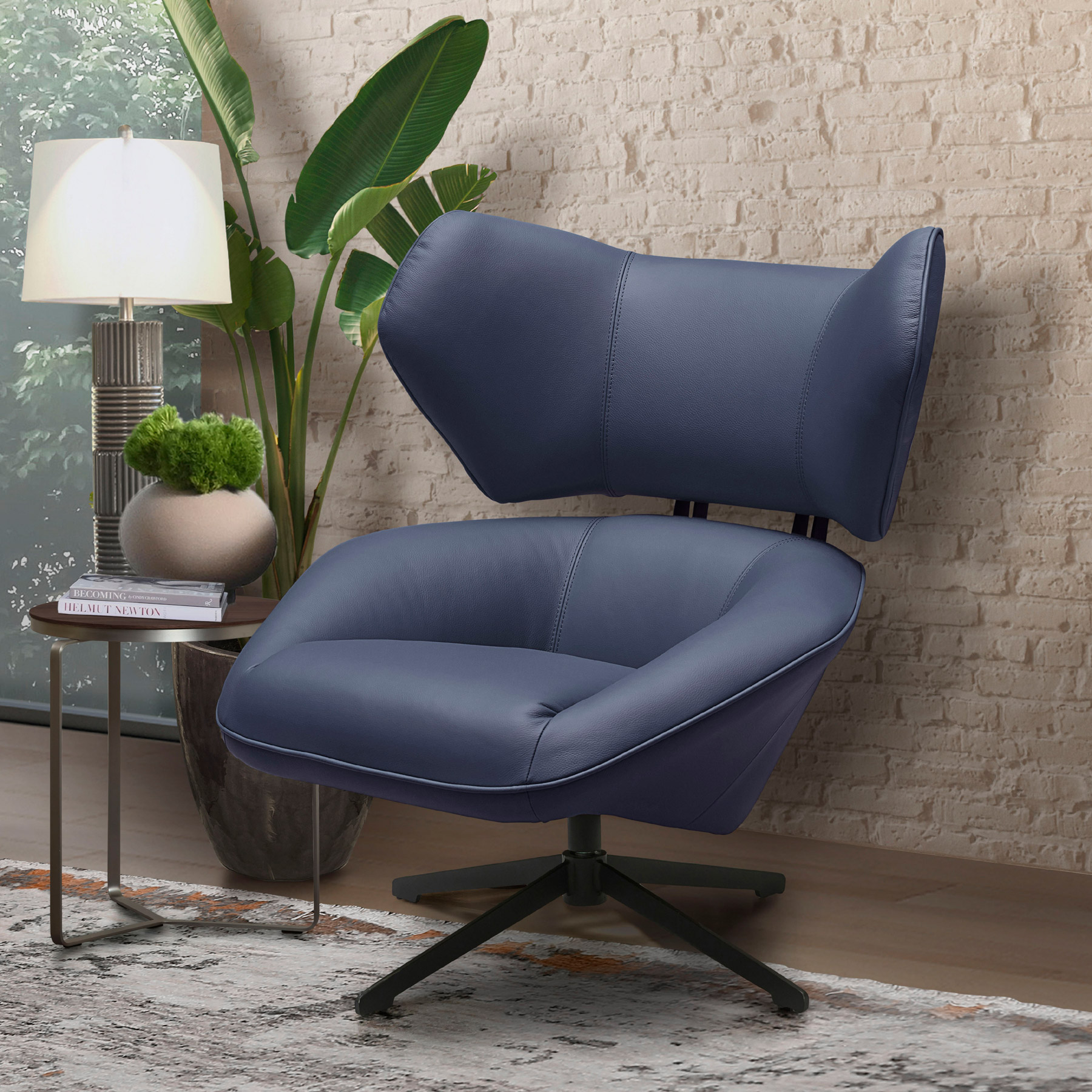 The Electra Leather Swivel Chair by Abbyson is a must have statement piece for your home, with its eye-catching egg shape and modern luxurious style. Electra is crafted fully in 100% Top Grain Leather that is soft and buttery to the touch. This accent chair features beautifully hand-crafted top stitching details throughout the seat and back, making it a stunning addition to your living space or home office. A 360-degree swivel feature, along with an elastic webbing suspension system and high-density foam seating, make this piece comfortable as well as stylish.