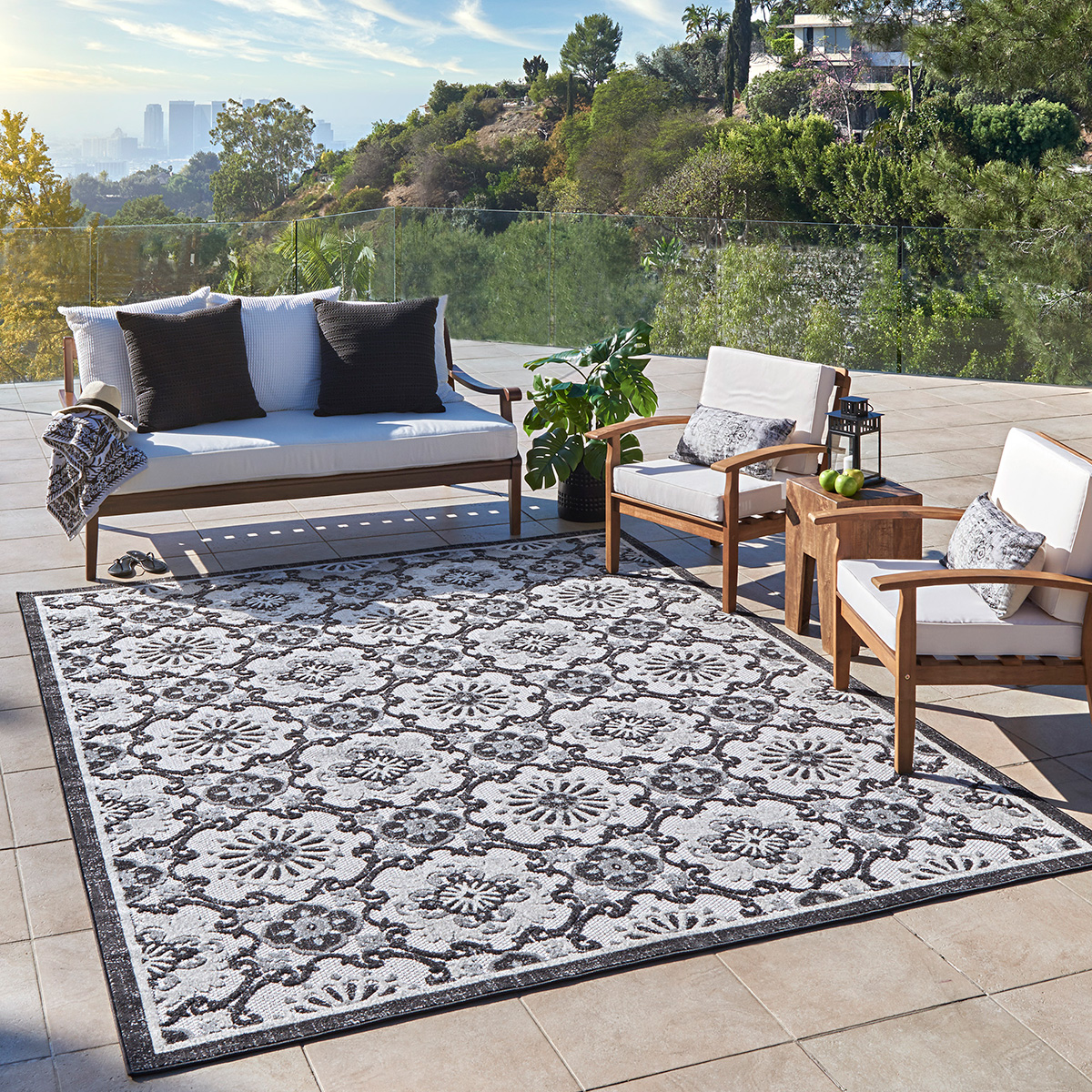 The Elements Indoor/Outdoor Rug Collection offers a textural surface that combines a flat weave with a low-cut pile. These rugs will add comfort underfoot and a designer touch. They are power-loomed with durable olefin yarns which make them both practical and family-friendly.