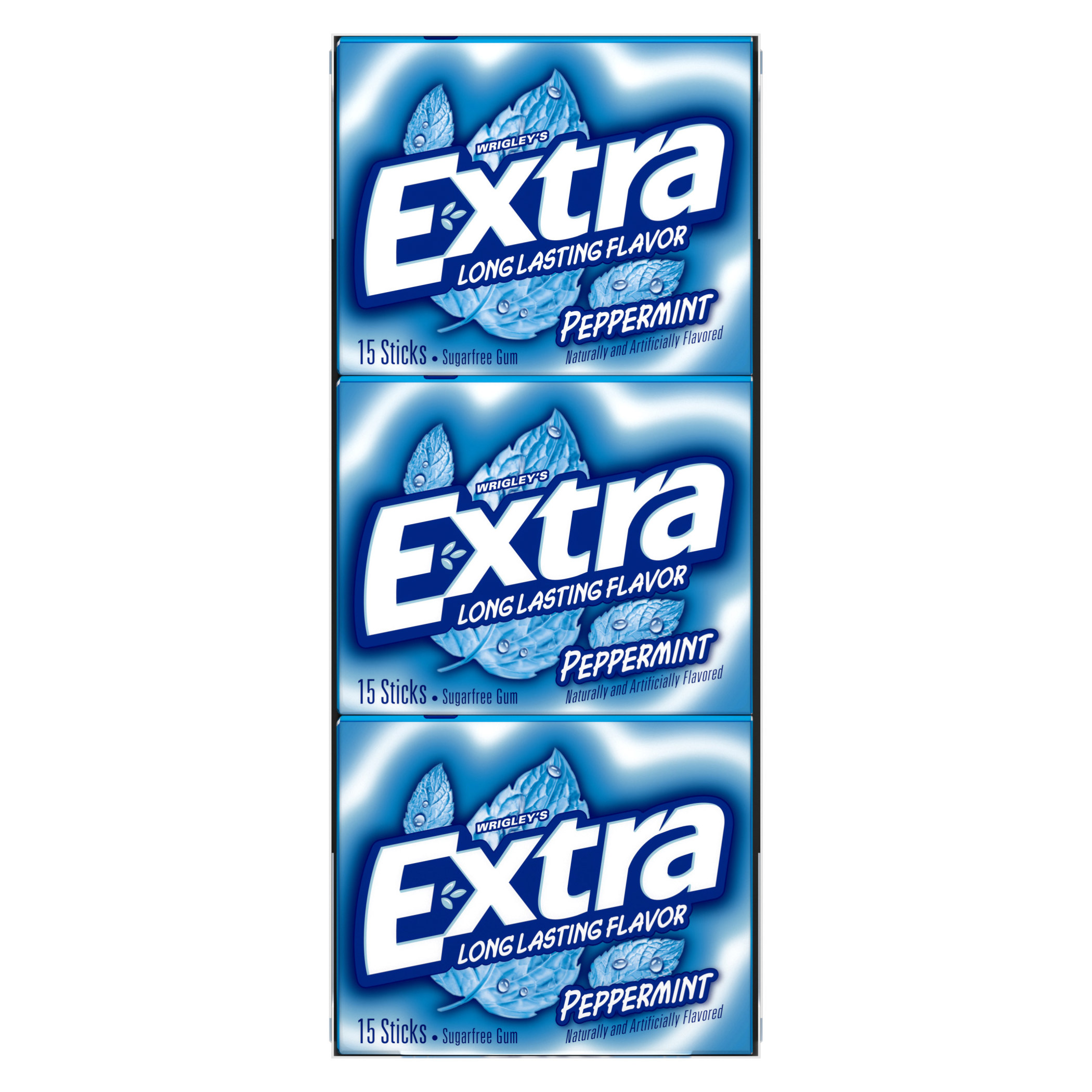 Extra Mint Sugar Free Chewing Gum, Peppermint, 15-sticks, 12-count