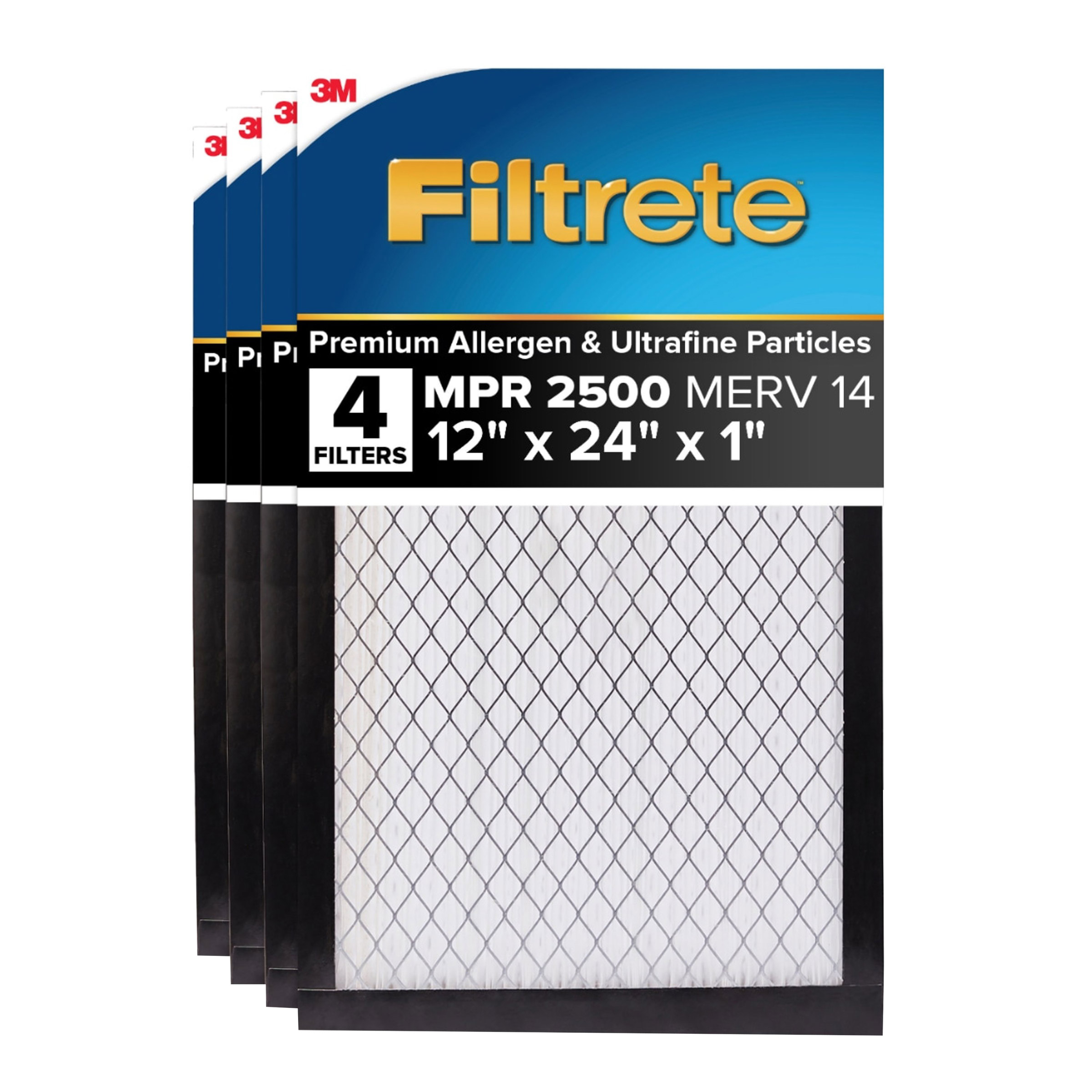 Filtrete Air Filter 1”, MPR 2500 MERV 14, High Performance Premium Allergen, Ultrafine Particles, Bacteria and Virus Filter, 4-pack