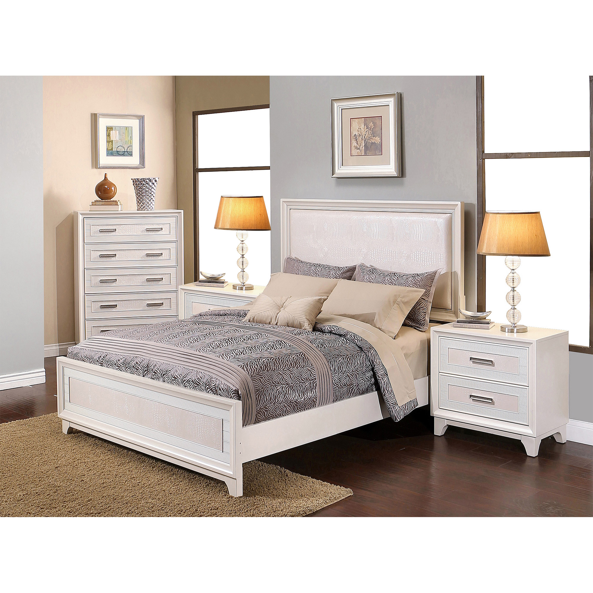 Bring designer-style luxury to your bedroom suite with the Florence Bedroom Collection by Abbyson Living. Designed with elegant and detailed hand-crafted pieces, Florence is constructed of high-end tropical hardwood, covered with a rich ivory finish. Additionally, Florence offers a very exclusive feature in the upholstered performance vinyl, located on the headboard, footboard, and all case good drawer fronts. It is soft to the touch and unique in style. Enjoy lavish style with the excellently constructed case goods. The drawers feature metal ball-bearing gliders for smooth openings and closings; the laminated wood drawer boxes are fully sanded, stained and offer dovetail joints; felt-linings are featured on the top drawers for protection of valuables and clothing; custom designed metal drawer knobs and the hand-carved details in the bedroom’s style complete the luxurious design. These elements combine to create a design that is inviting, classic, and durable. Make an elegant, eye-catching statement to the most important room in your home with the all new Florence Bedroom Collection.4-pc set includes: bed, 2 night stands and chest