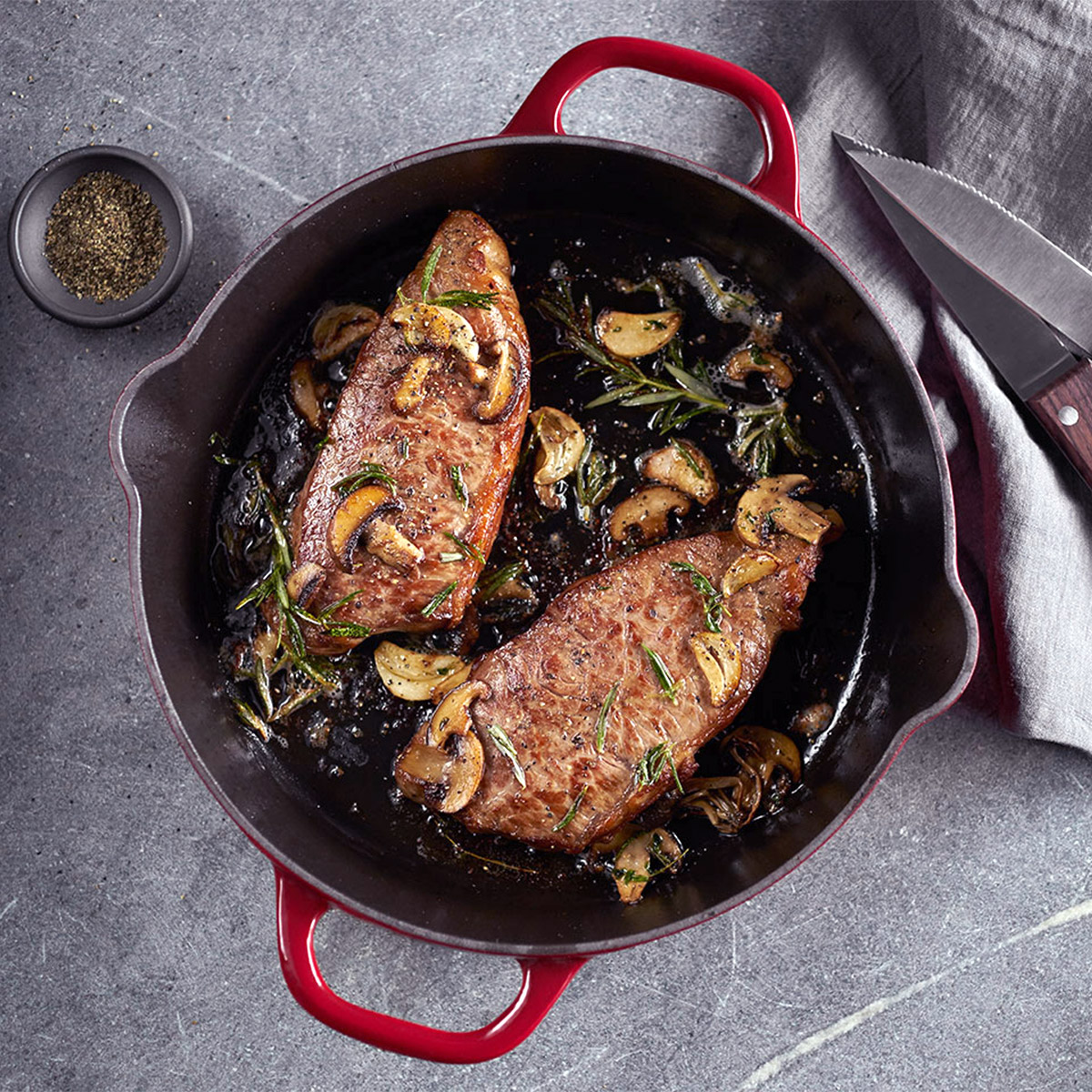 - Enameled interior for quick and easy cleaning—no seasoning required