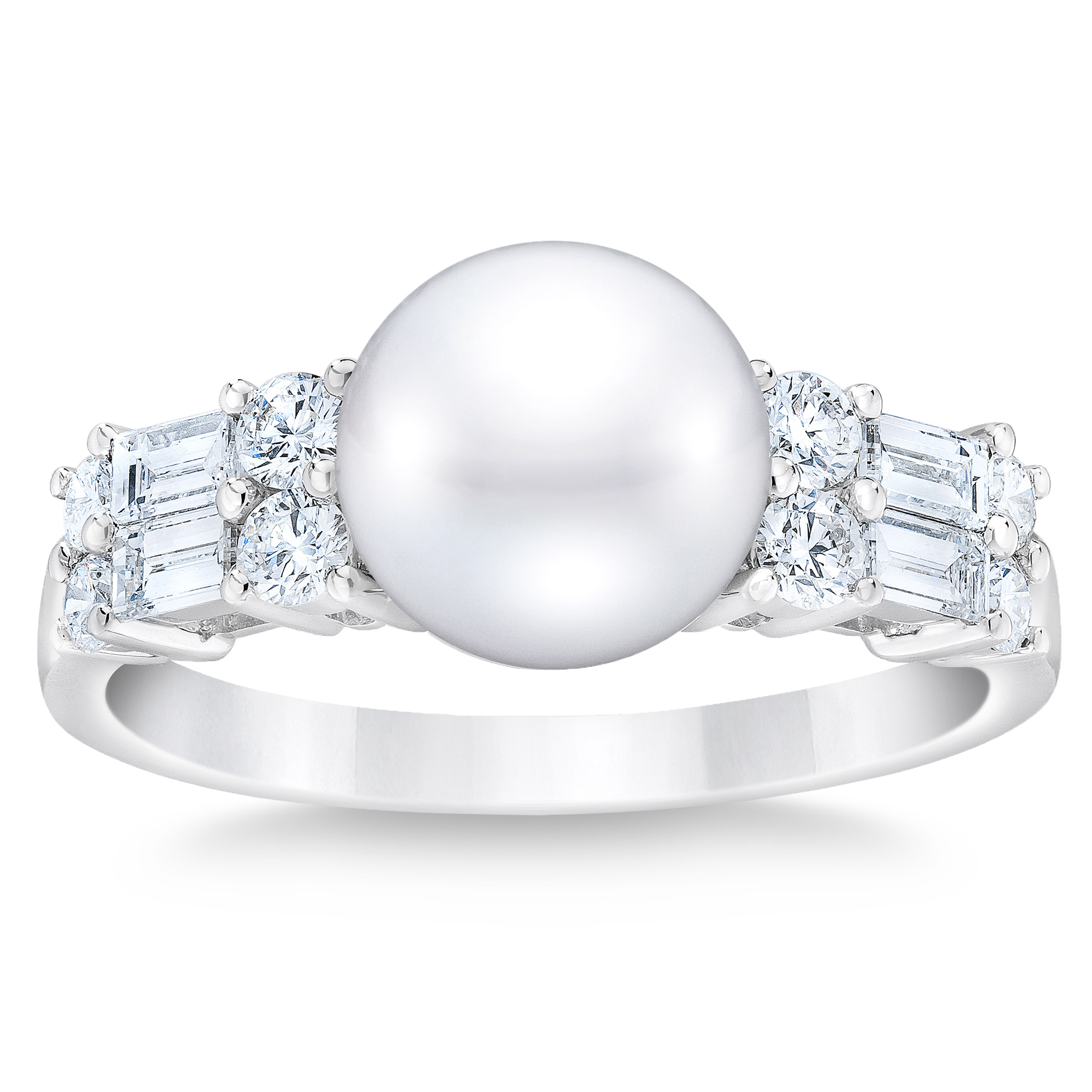 Freshwater Cultured 8-8.5mm Pearl & Diamond 14kt White Gold Ring