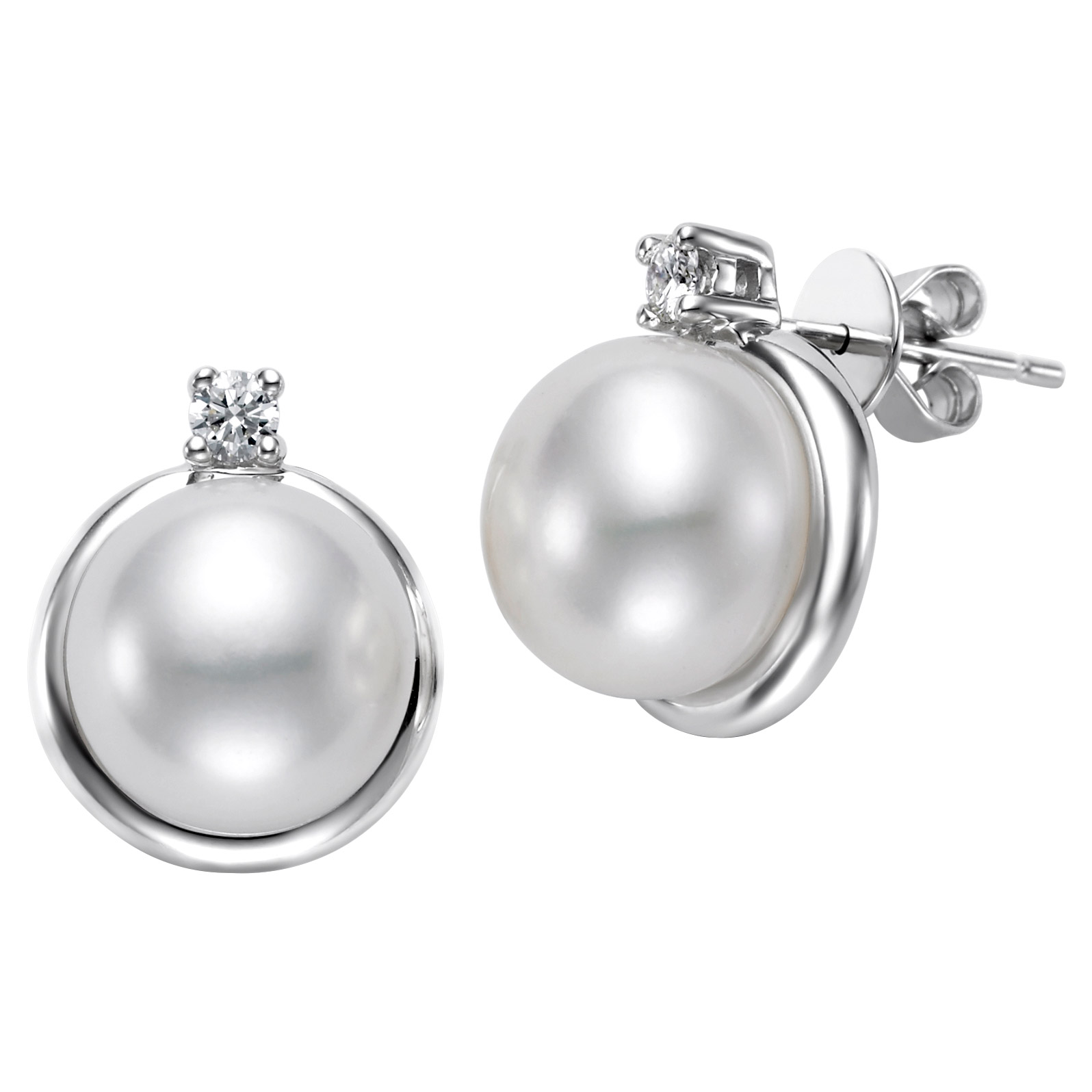 Freshwater Cultured 9-10mm Pearl & Diamond 14kt White Gold Earrings