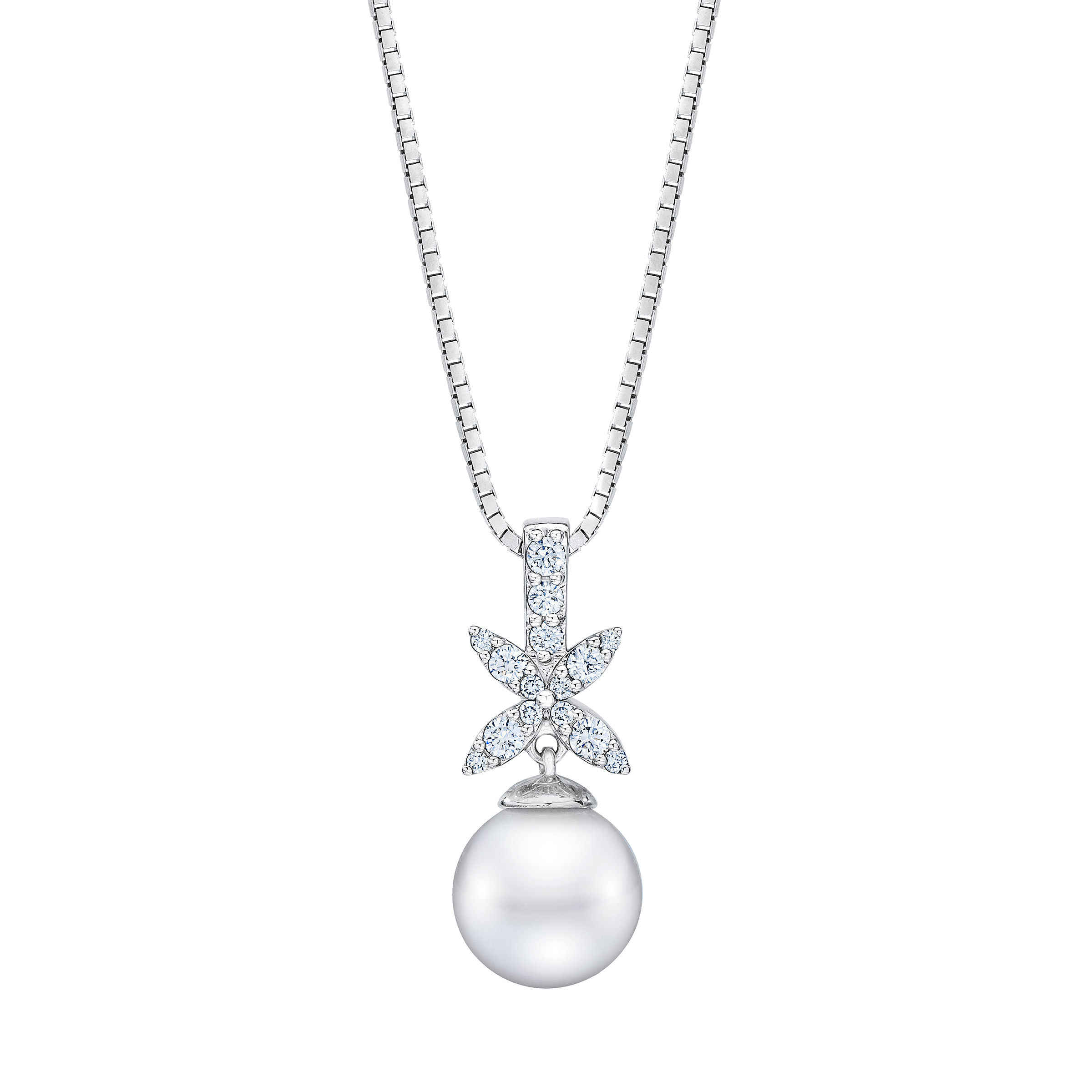 Freshwater Cultured 9-10mm Pearl & Diamond 14kt White Gold Pendant