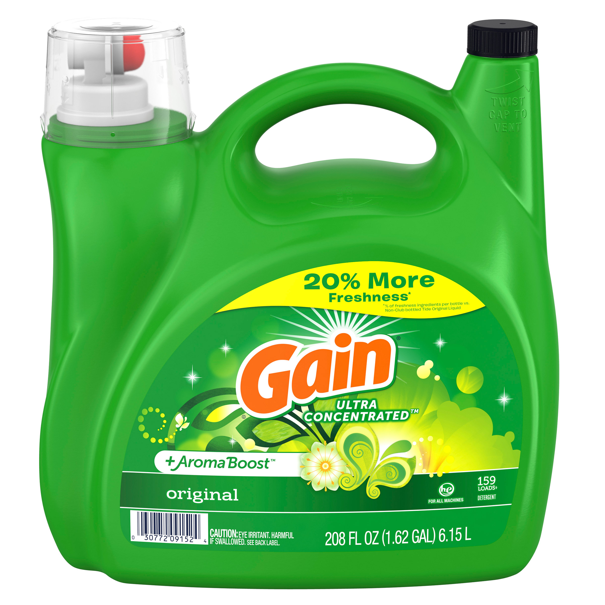 Gain Ultra Concentrated +AromaBoost Liquid Laundry Detergent, Original, 159 Loads, 208 fl oz