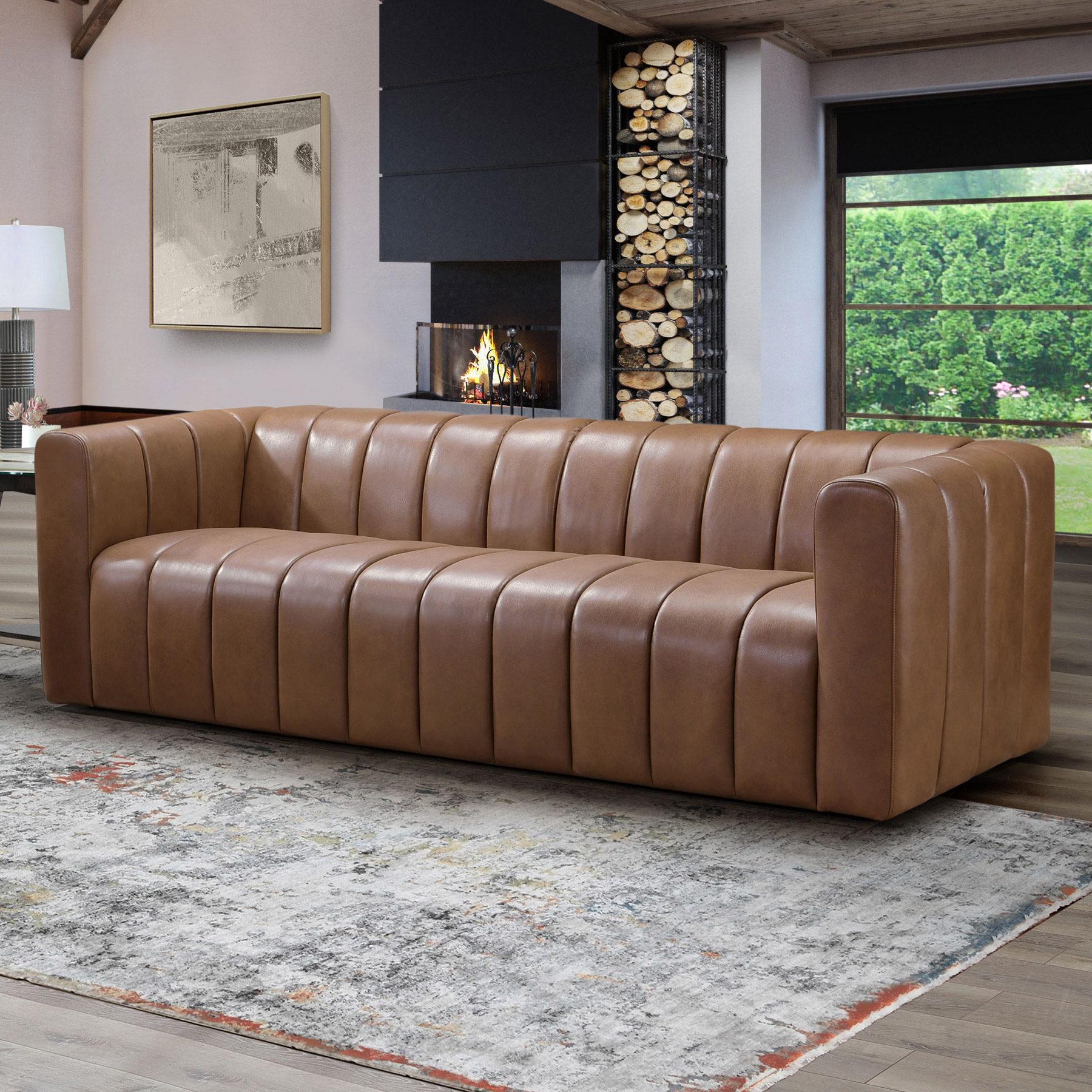 Where elegant tradition meets designer style – the Gianna Collection by Abbyson features sleek tuxedo arms and channel tufted bench seating for a clean, modern design. Each Gianna piece is upholstered in soft yet durable 100% top grain leather over a kiln-dried solid wood frame. A seamless combination of 2.0 high density foam seat cushions and no-sag seat springs provides the right combination for maximum durability and lasting comfort, constructed to stand the test of time.