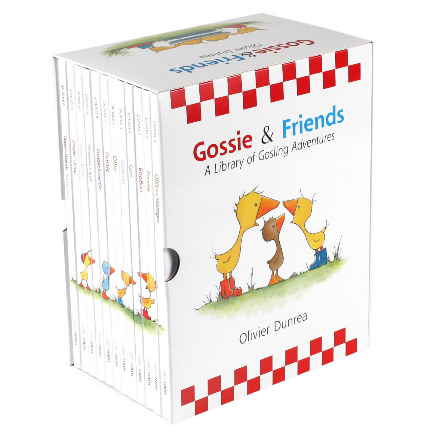 They are small goslings with big personalities! Join Gossie and her friends in 12 great adventures. With charming illustrations and gentle text, Olivier Dunrea has created lovable, sweet characters that will appeal to the youngest listeners. As an added bonus, the book spines create a playful scene between Gossie and her friends that would look great on any child's book-shelf