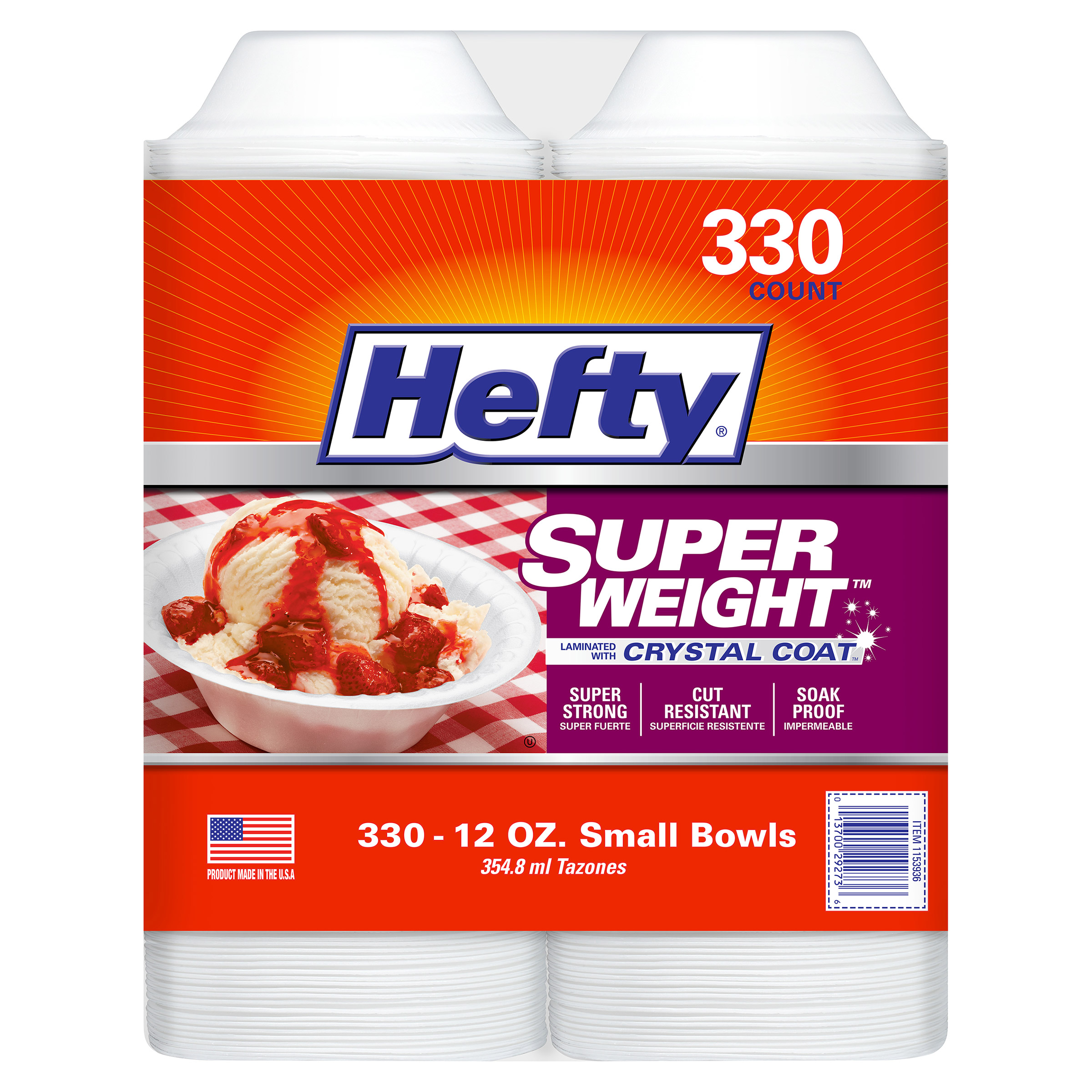 • This package includes 330 Hefty Super Weight disposable 12-ounce white foam bowls