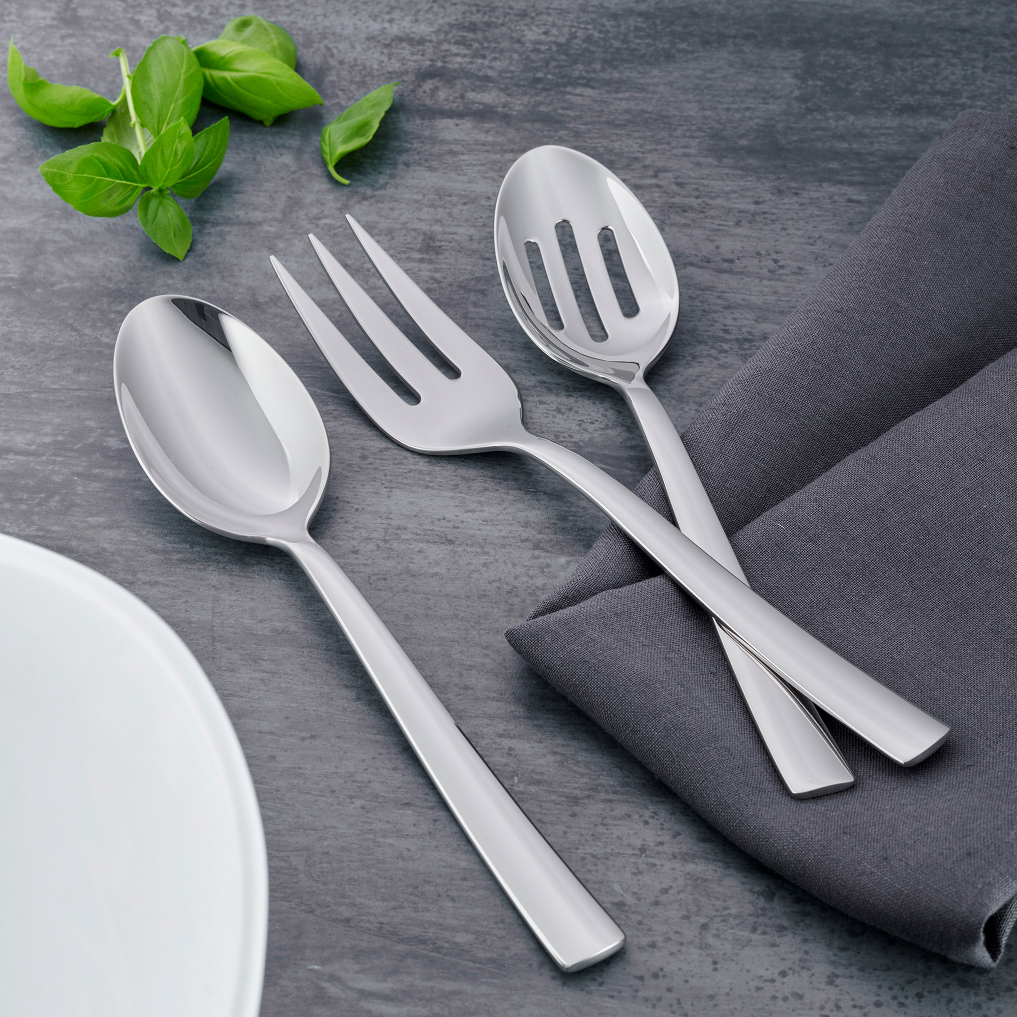 Contemporary, elegant design with distinctive standing knife. Manufactured from the highest quality of 18/10 stainless steel, each piece is heavy gauged. The combination of 18% chrome and 10% nickel results in optimal corrosion resistance and high luster finish. Influenced by the expertise in fine cutlery craftsmanship, the Henckels International flatware collections feature unique handle designs, perfect balance, forged blades, and comfortable grip.