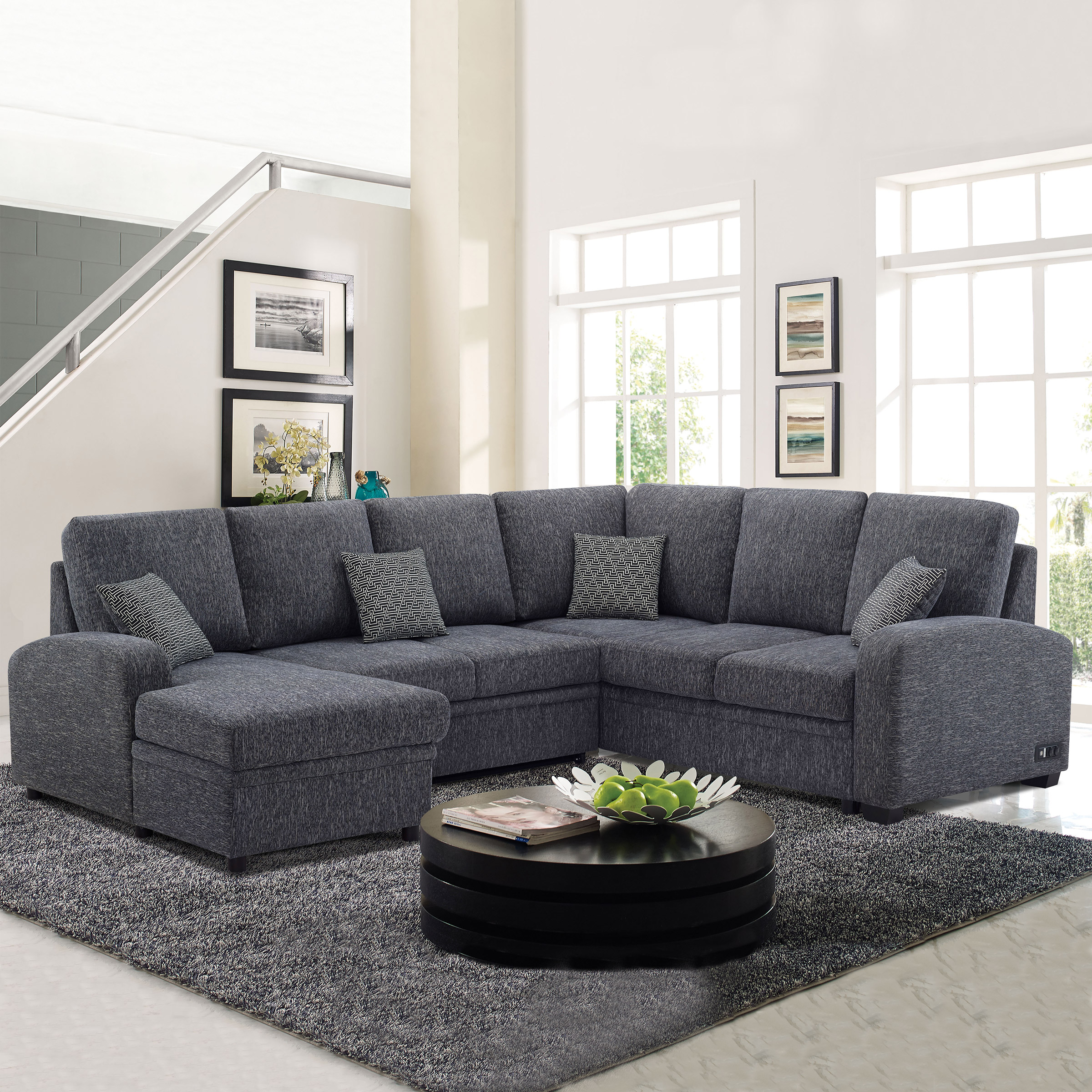 - Sectional with Armless Loveseat, Pullout Sleeper and Chaise Lounge with Storage