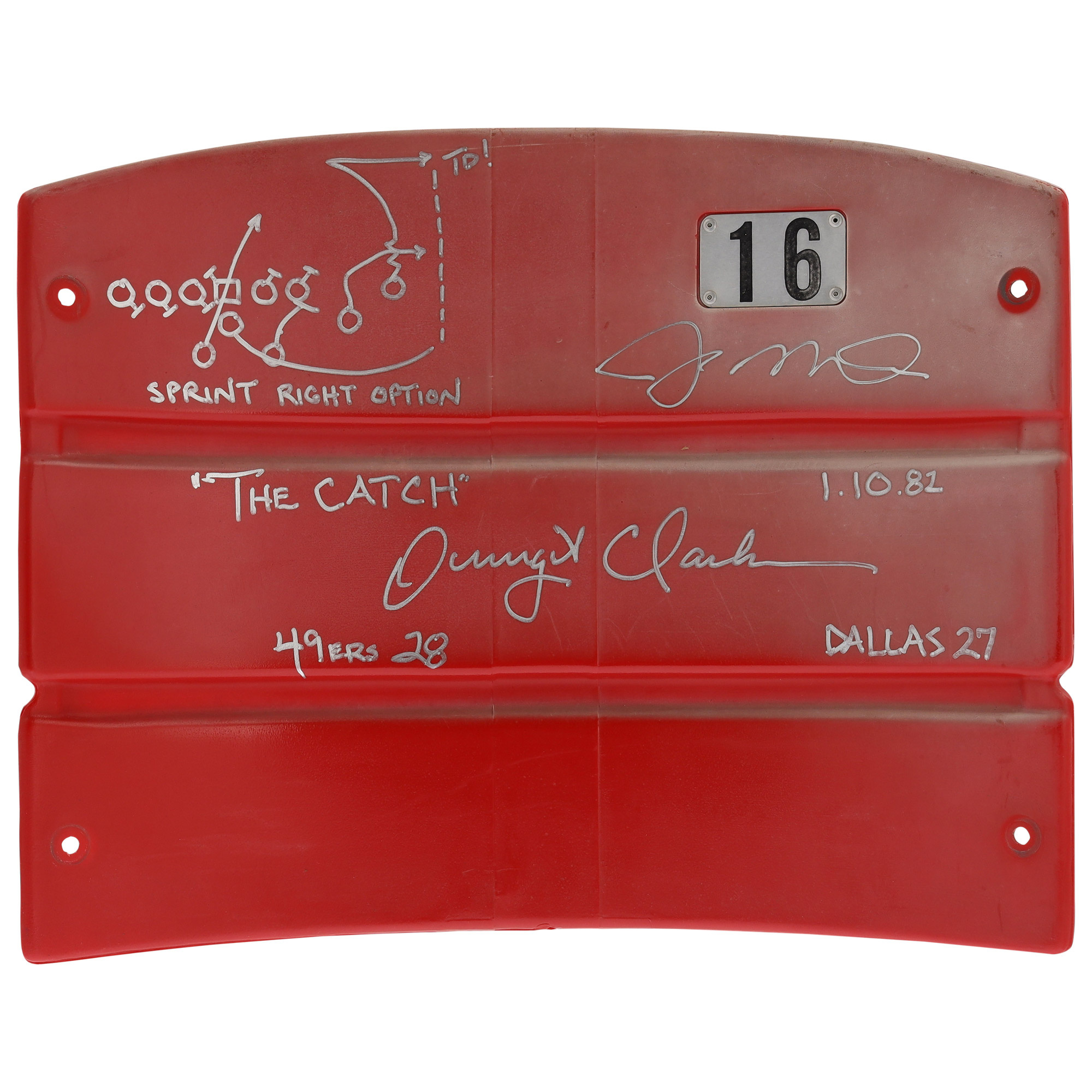 Joe Montana and Dwight Clark Dual Signed Candlestick Red Seatback with Multiple Inscriptions including "The Catch" Play Drawn by Dwight Clark – Fanatics Authenticated