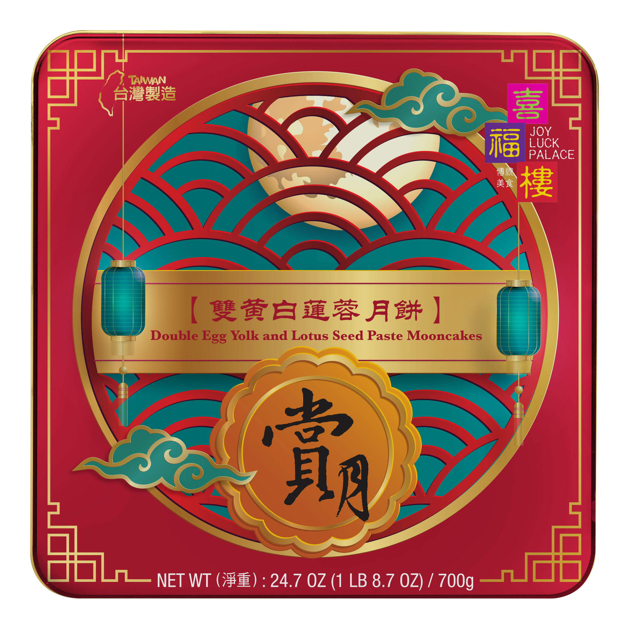 Joy Luck Palace Double Egg Yolk and Lotus Seed Paste Moon Cakes, 24.7 oz, 4-Count