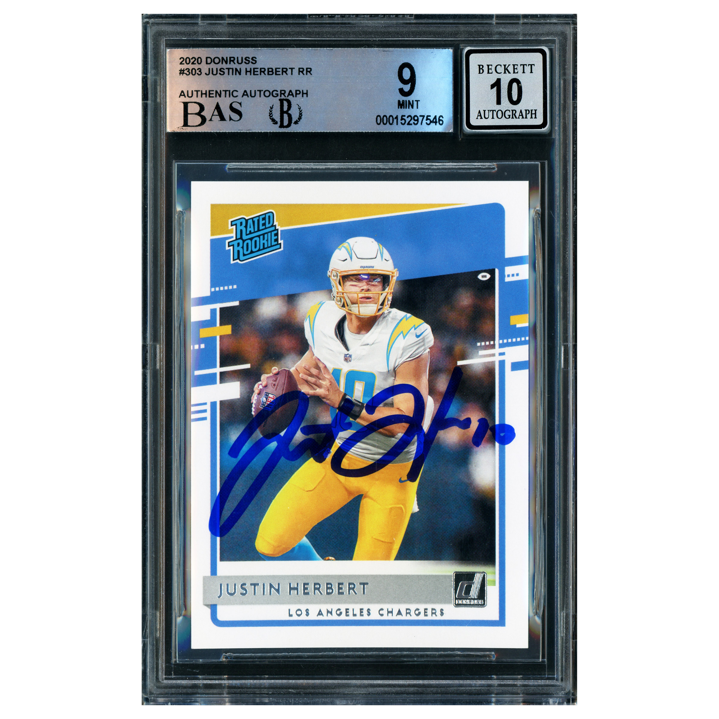 Justin Herbert Autographed 2020 Donruss Rated Rookie Card #303 - Beckett Authenticated