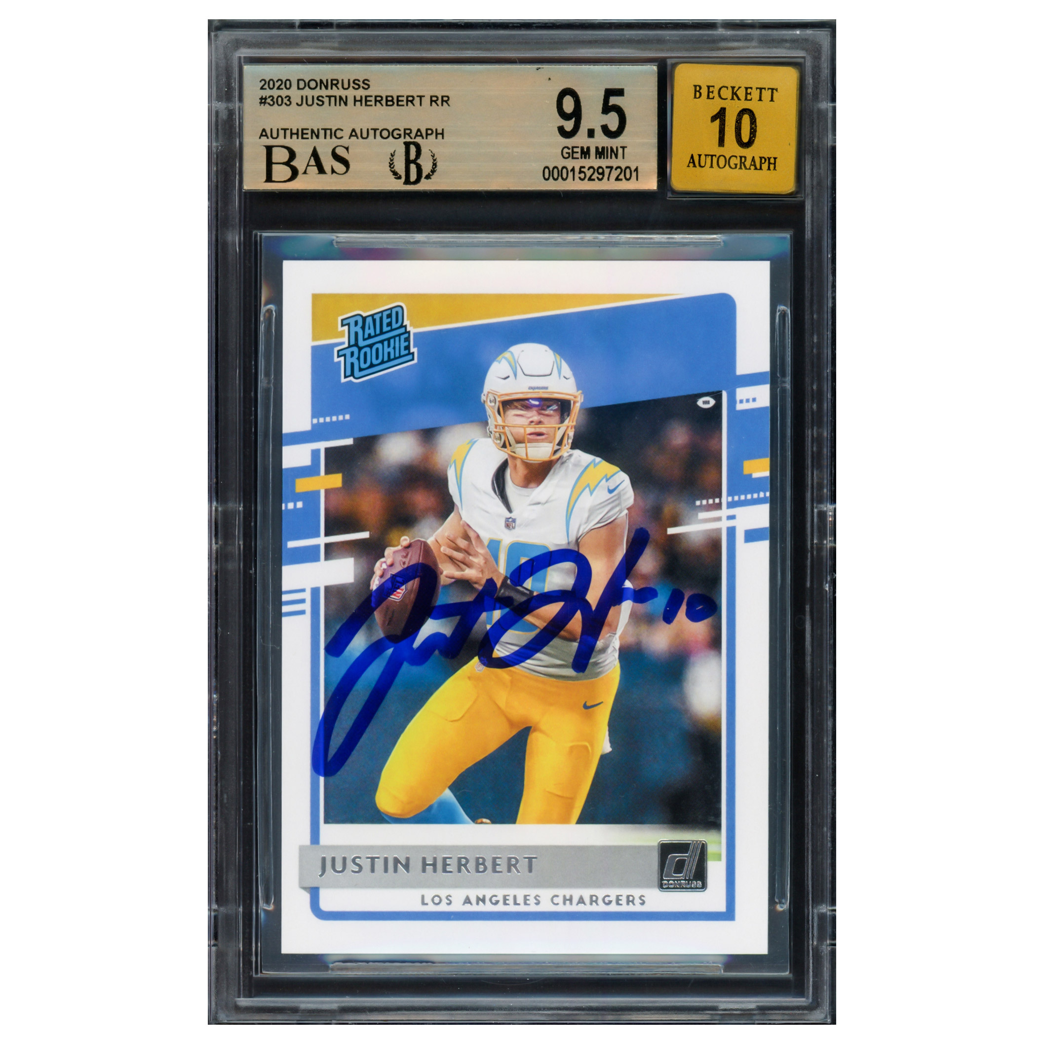 Justin Herbert Autographed 2020 Donruss Rated Rookie Card #303 Los Angeles Chargers Card - Beckett Authenticated