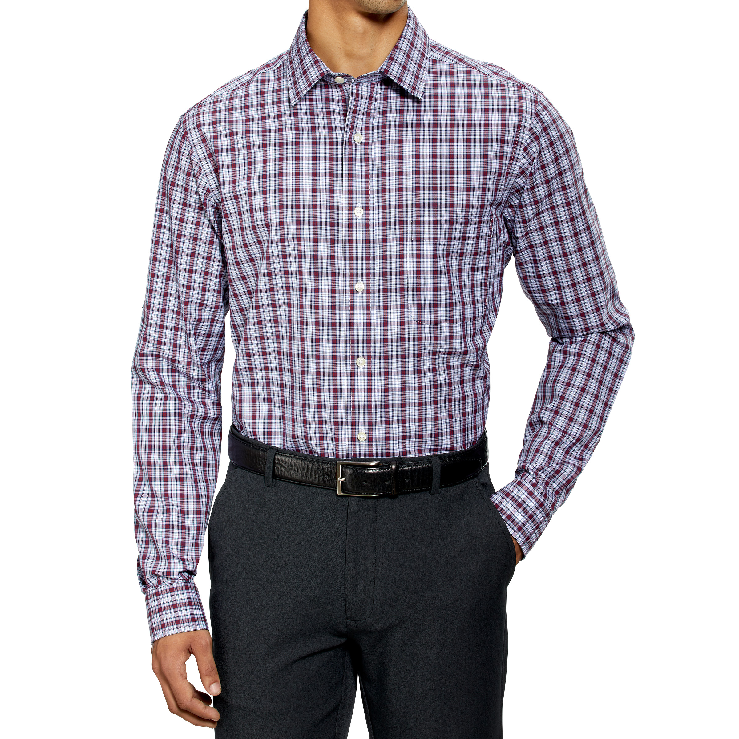 Kirkland Signature Men’s Tailored Fit Dress Shirt, Red Plaid