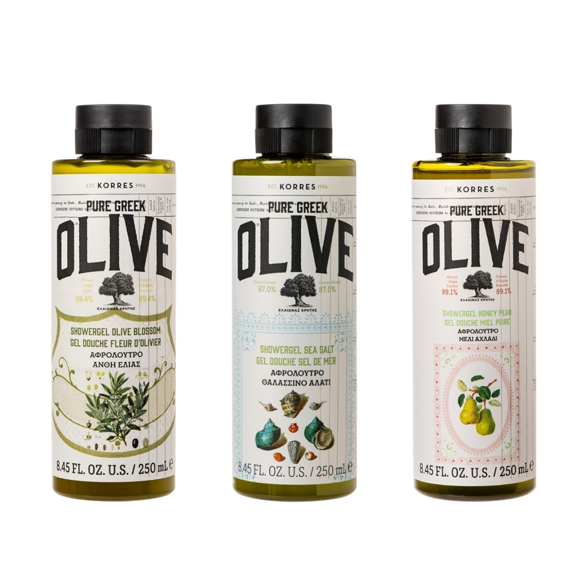 KORRES Pure Greek Olive Shower Gel Trio, 8.45 fl oz