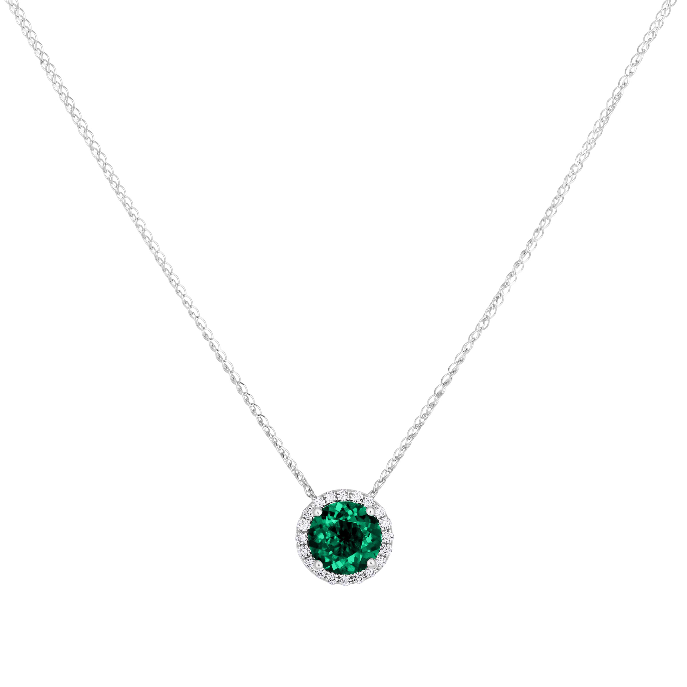 Lab Created Emerald and Diamond 14kt White Gold Pendant