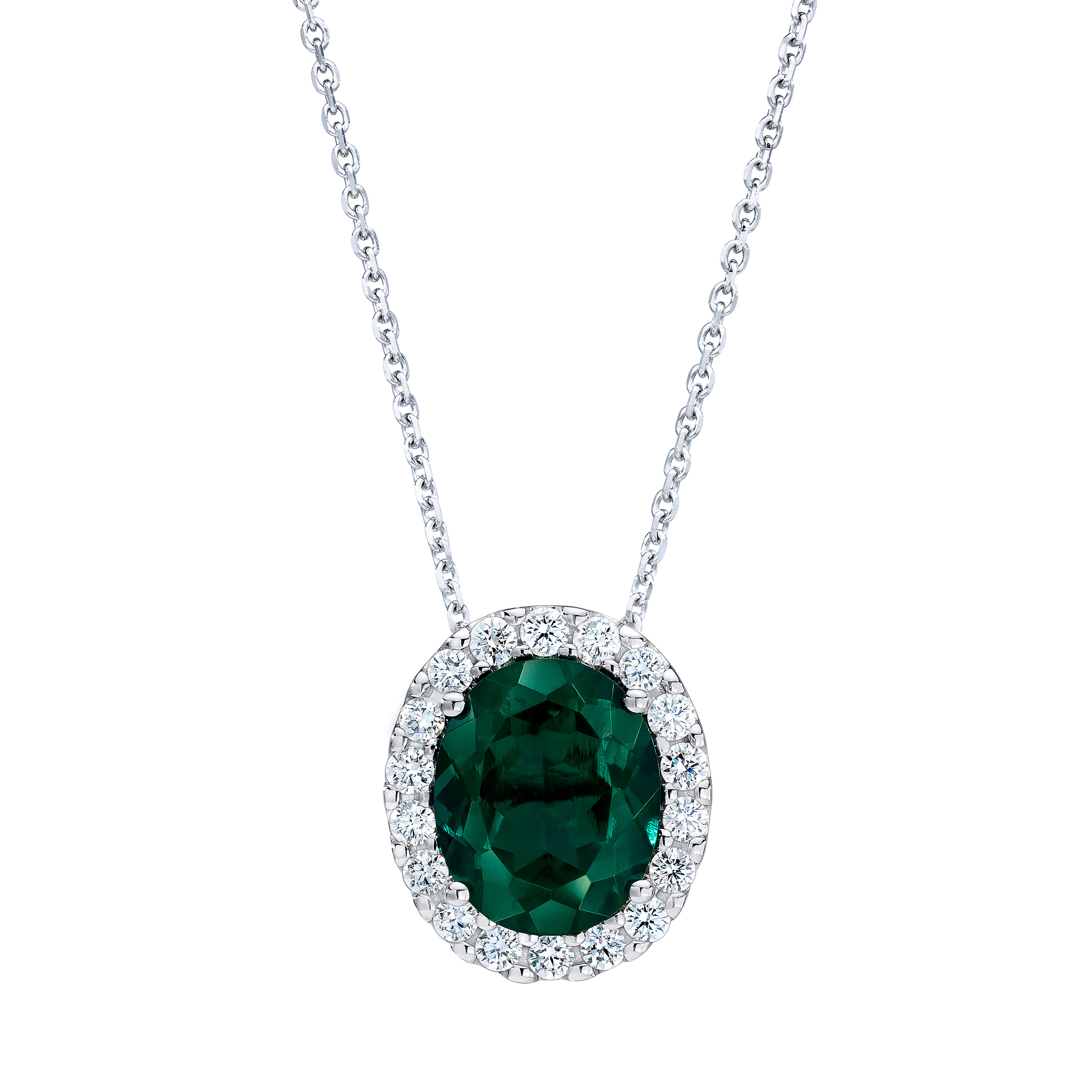 Lab Created Emerald and Diamond 14kt White Gold Pendant