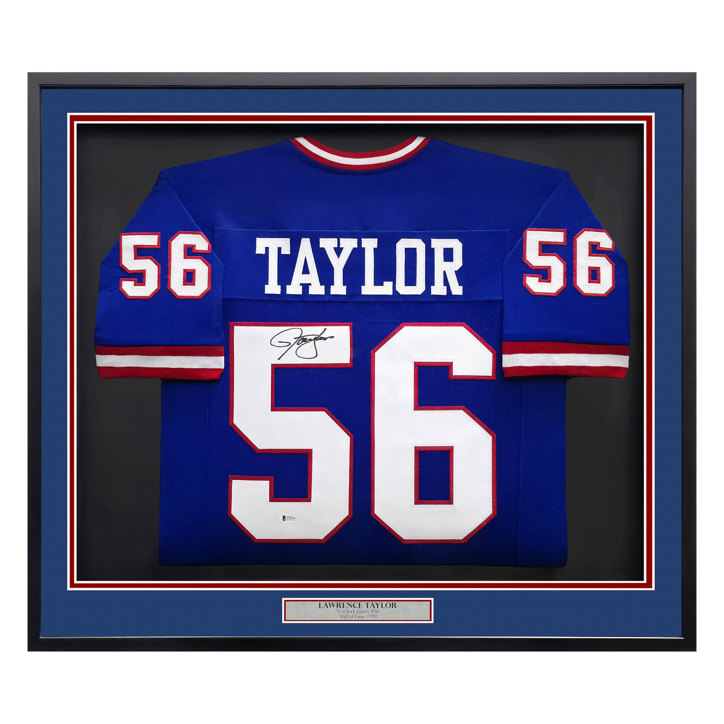 Lawrence Taylor Autographed Framed Blue New York Giants Jersey - Beckett Authenticated