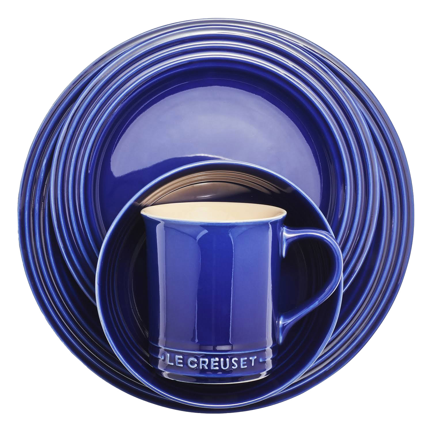 The Le Creuset Dinnerware set includes service for four, complete with dinner plates, salad plates, soup bowls and mugs. Crafted from premium stoneware, each piece is finished with a vibrant glaze, allowing for stain resistance, minimal chipping, and easy cleanup. Designed to stay beautiful with daily use, Le Creuset’s dinnerware will bring elegant style to every table and occasion. Includes: