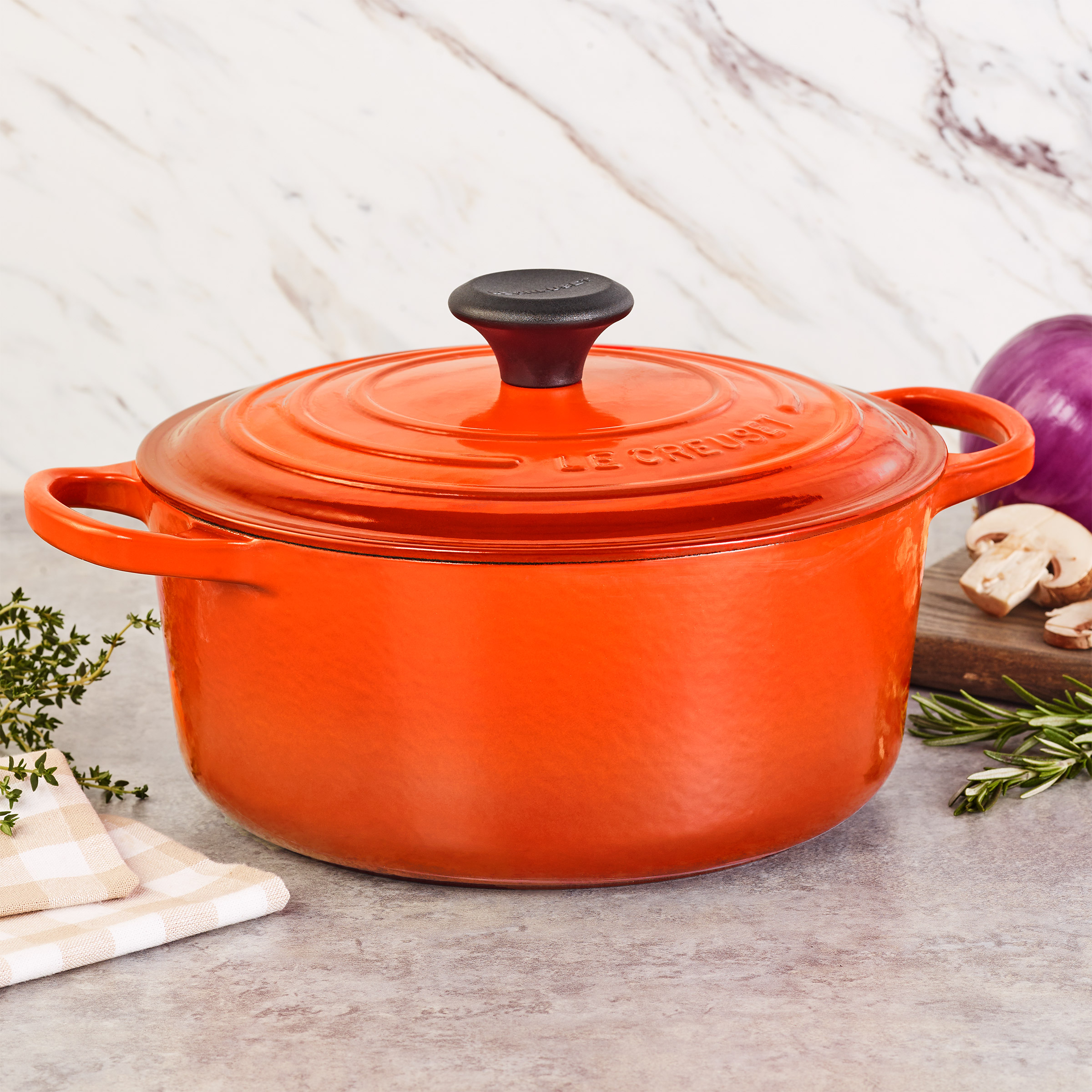 Le Creuset® brings generations of perfected craftsmanship and functionality to your home with this beautiful cast iron Dutch oven.  This Dutch oven is recognized for it's durability and strength while providing consistent and even heat, which is perfect for slow cooking, roasting and braising.Features: