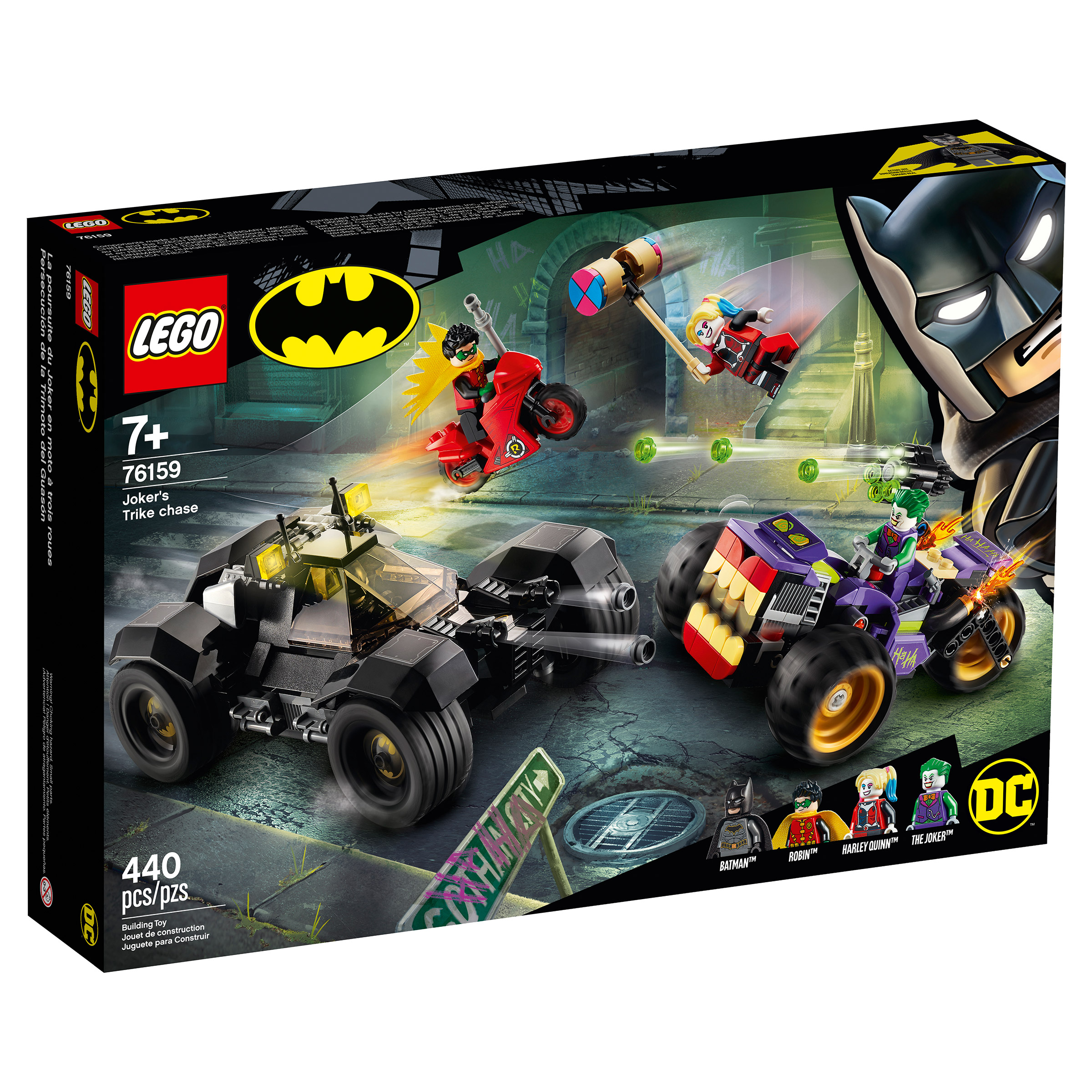 - Includes 4 Minifigures and the Batmobile