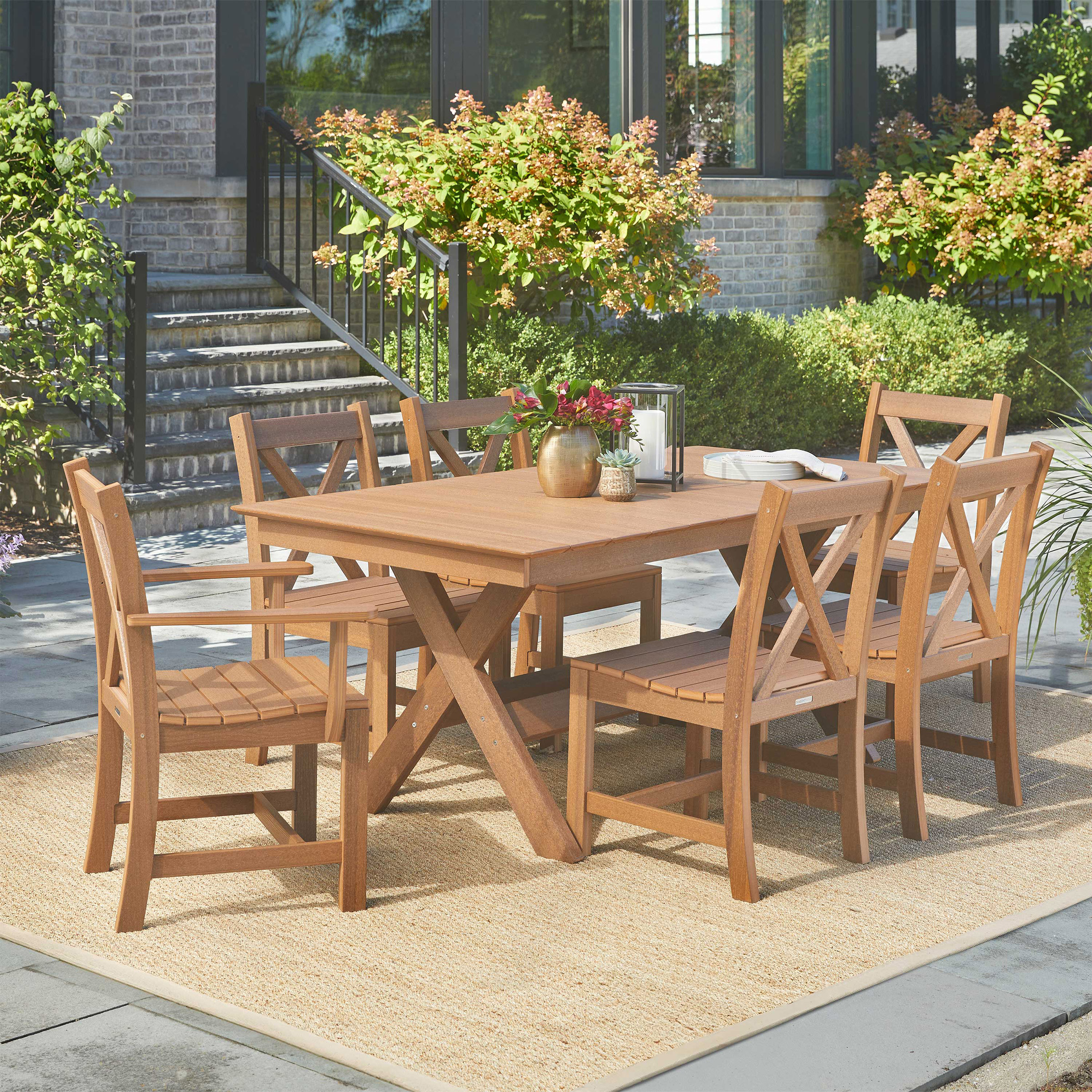 - Includes Two Arm Chairs, Four Armless Chairs, and One Table with Umbrella Hole
