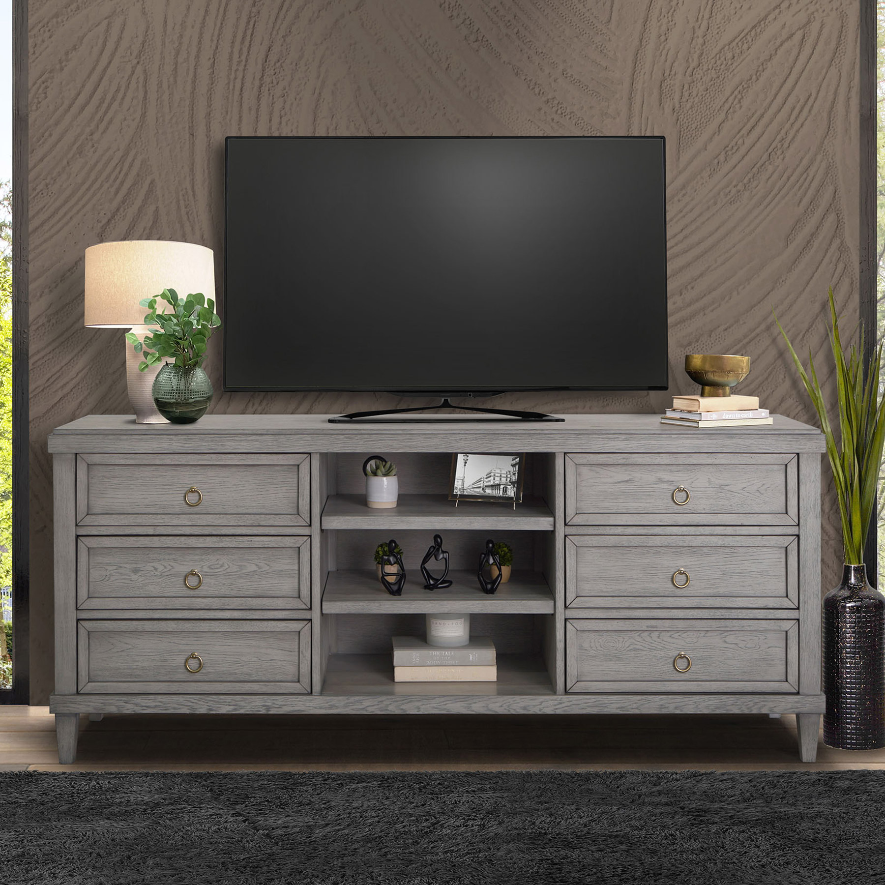 The Lilith 70” Media Console by Abbyson is a staple centerpiece, bringing classic simplicity and charm into your home. Lilith is beautifully constructed with durable rubberwood and finished in a rich oak veneer with a natural texture. The delicate hand-carved detailing and antiqued bronze metal pull rings, make this console a unique piece to own for years to come. The multi-use console can support a television and entertainment components and features ample storage with six soft-close drawers, and three center shelves to display your personal items. Designed for versatility, Lilith’s modest size will be the perfect fit for any space in your home.