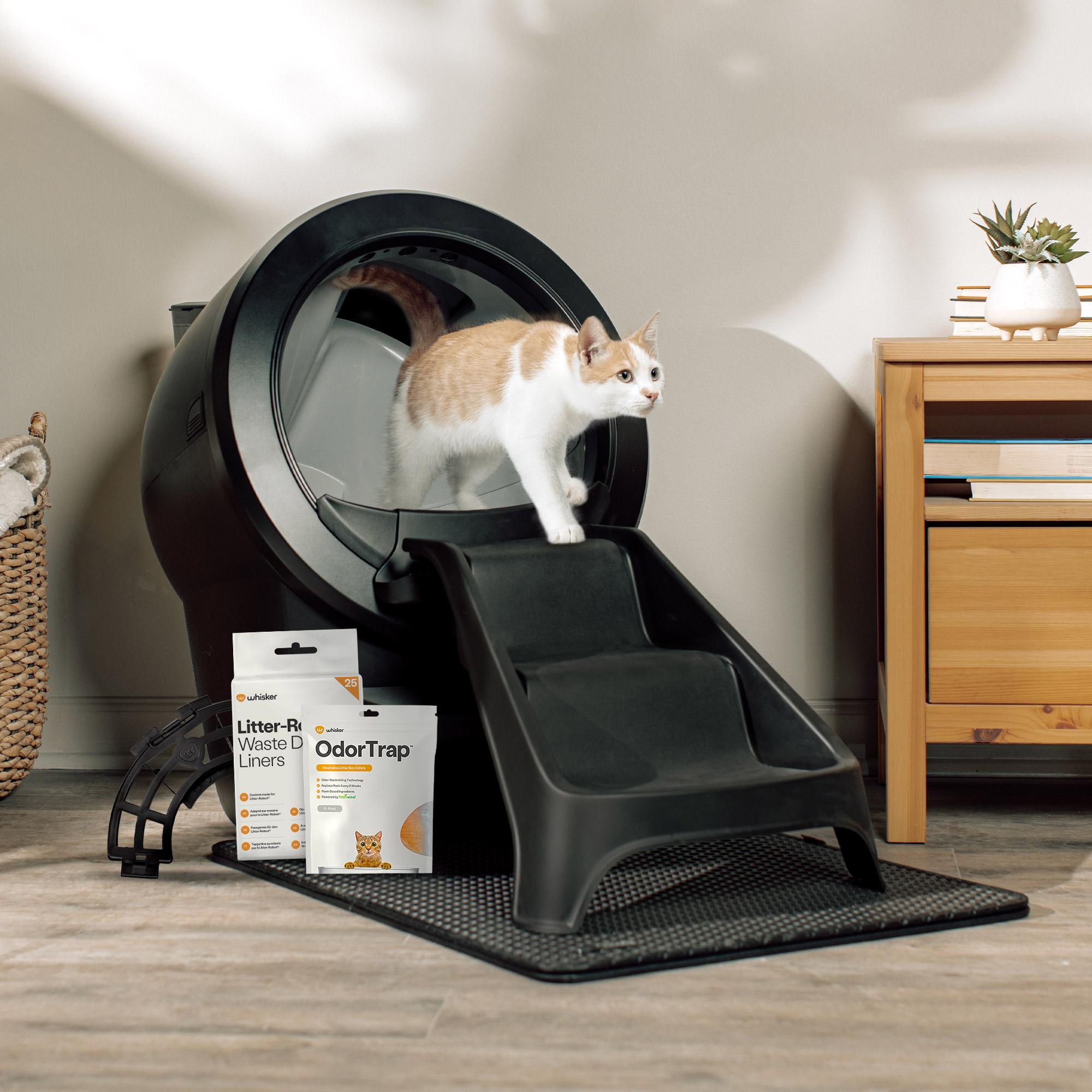 Stop scooping cat litter, neutralize litter box odors, and give your cat a clean bed of litter every time with Litter-Robot 4®. Our quietest self-cleaning litter box features advanced litter-sifting technology, reduced litter tracking, a larger waste drawer for greater capacity, and real-time monitoring of waste and litter levels. Track your cat’s weight and litter box activity in the Whisker app. The Litter-Robot 4 LitterHopper® handles the task of refilling litter to optimal levels so you don’t have to, whether you’re home or away.