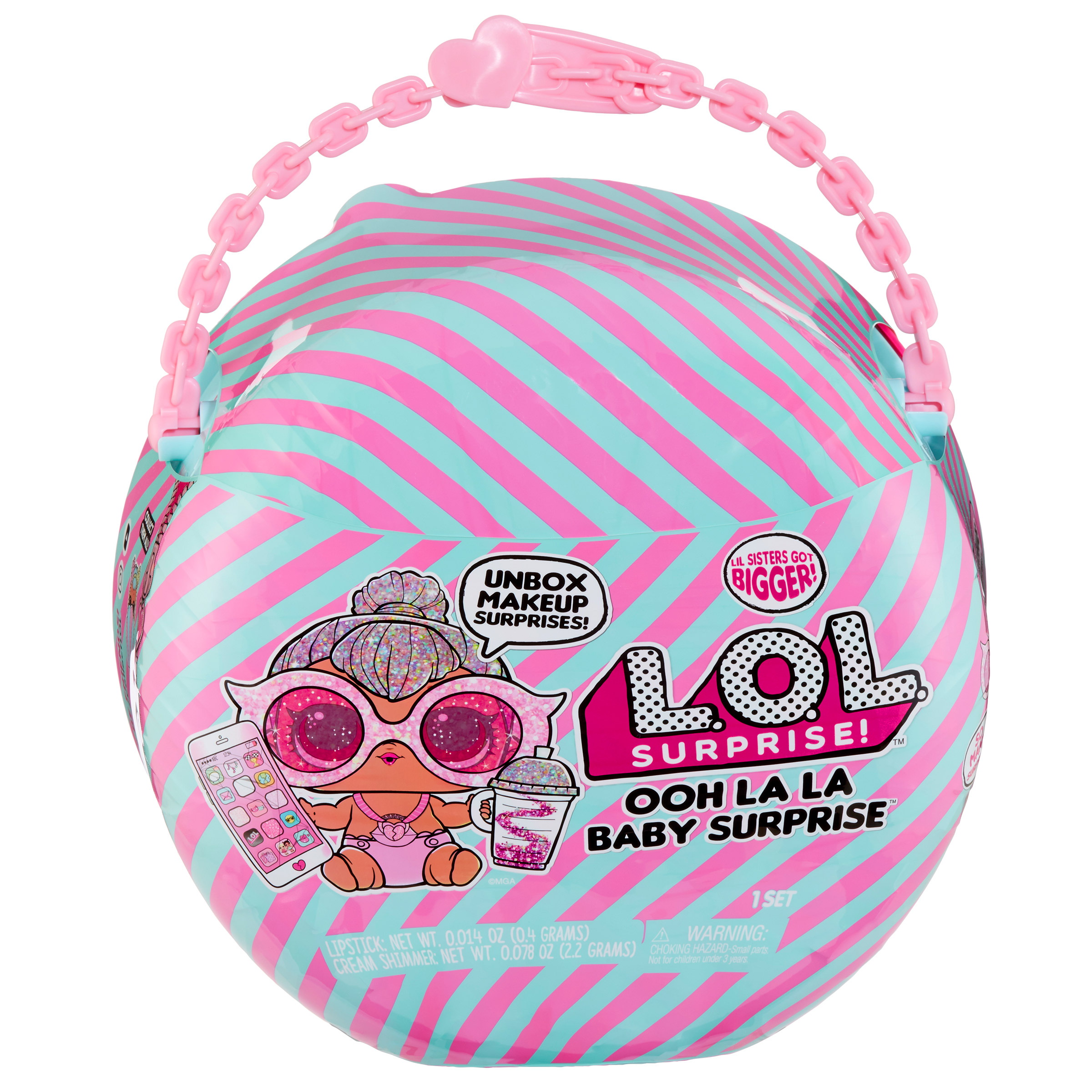 Introducing L.O.L. Surprise!™ Ooh La La Baby Surprise™, featuring Lil Sisters™ like you've never seen them before.This bigger 6" version of Lil Kitty Queen comes in a fiercely fashionable kitty purse for you. Unbox so many makeup and wear & share surprises, including a pacifier necklace with color-change lip gloss, and a play cell phone that has four colors of shimmer inside. Lil Kitty Queen also comes with a bottle filled with disappearing glitter. Pack all the accessories into the fabulous purse to take your makeup and doll on-the-go.Features: