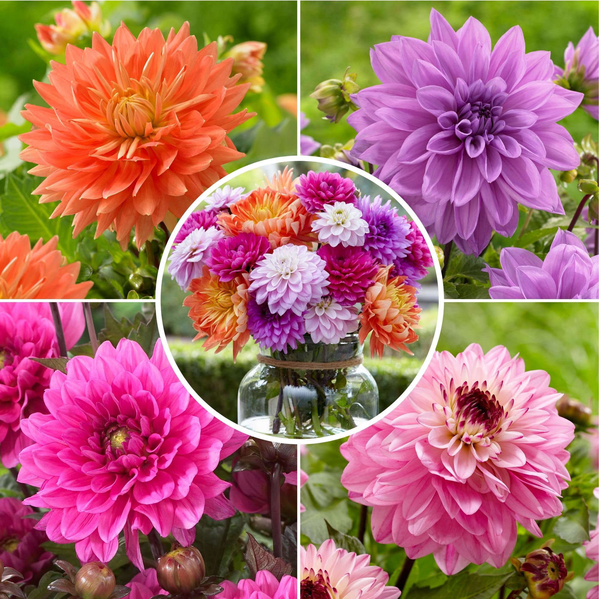 An irresistible assortment of colorful decorative dahlias for your summer garden. Plant the tubers in spring and enjoy a non-stop display of big, 5 to 7" blooms from July through October. Excellent companions for perennials and among the world's best cut flowers.