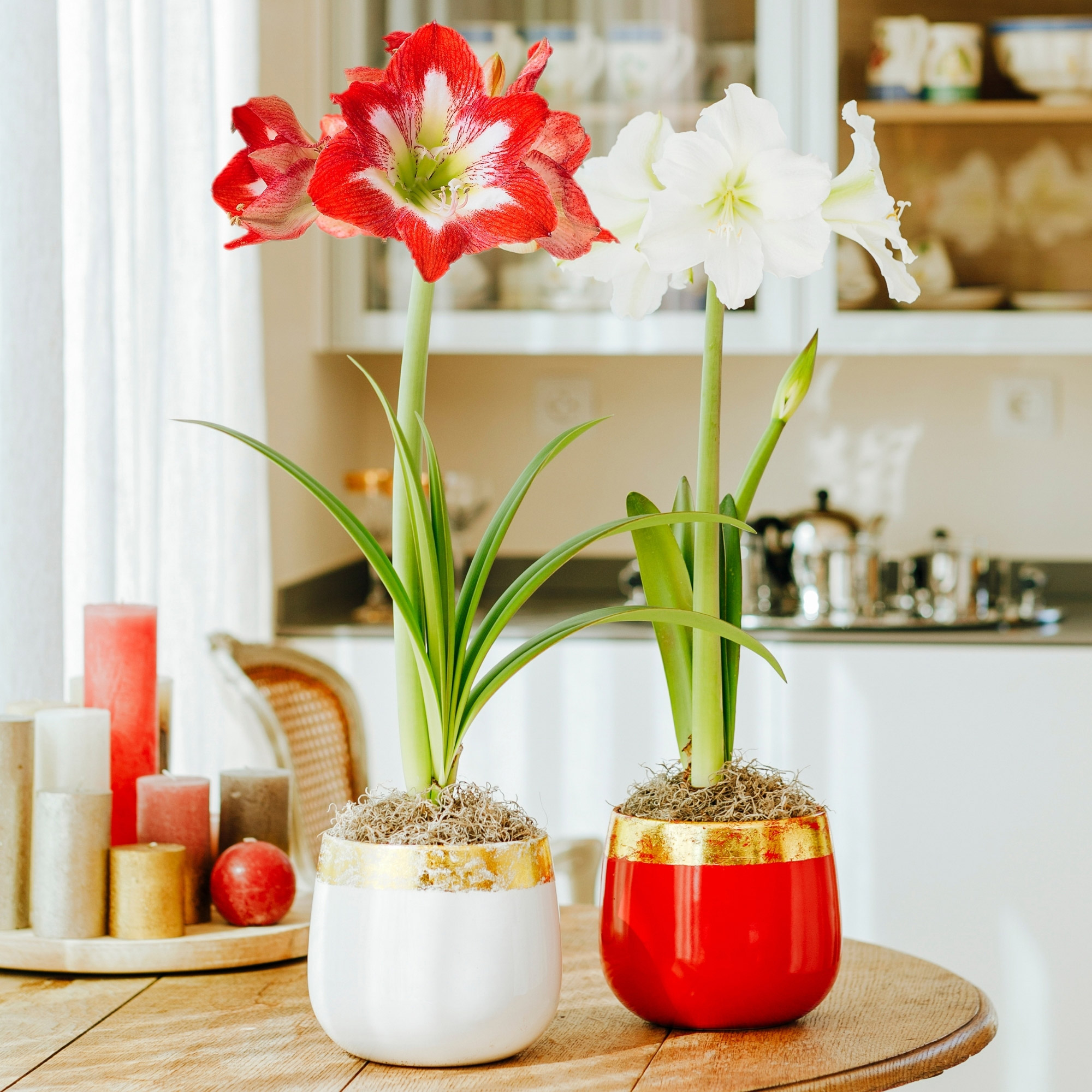 Longfield Gardens Amaryllis ‘Minerva’ & ‘Matterhorn’ Gift Kit Ceramic Pot Duo, 2 bulbs