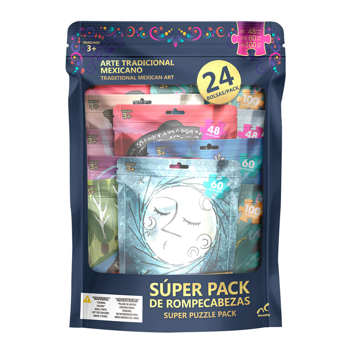- Includes: (8) Puzzles of 48- pieces, (10) Puzzles of 60-pieces, and (6) Puzzles of 100-pieces
