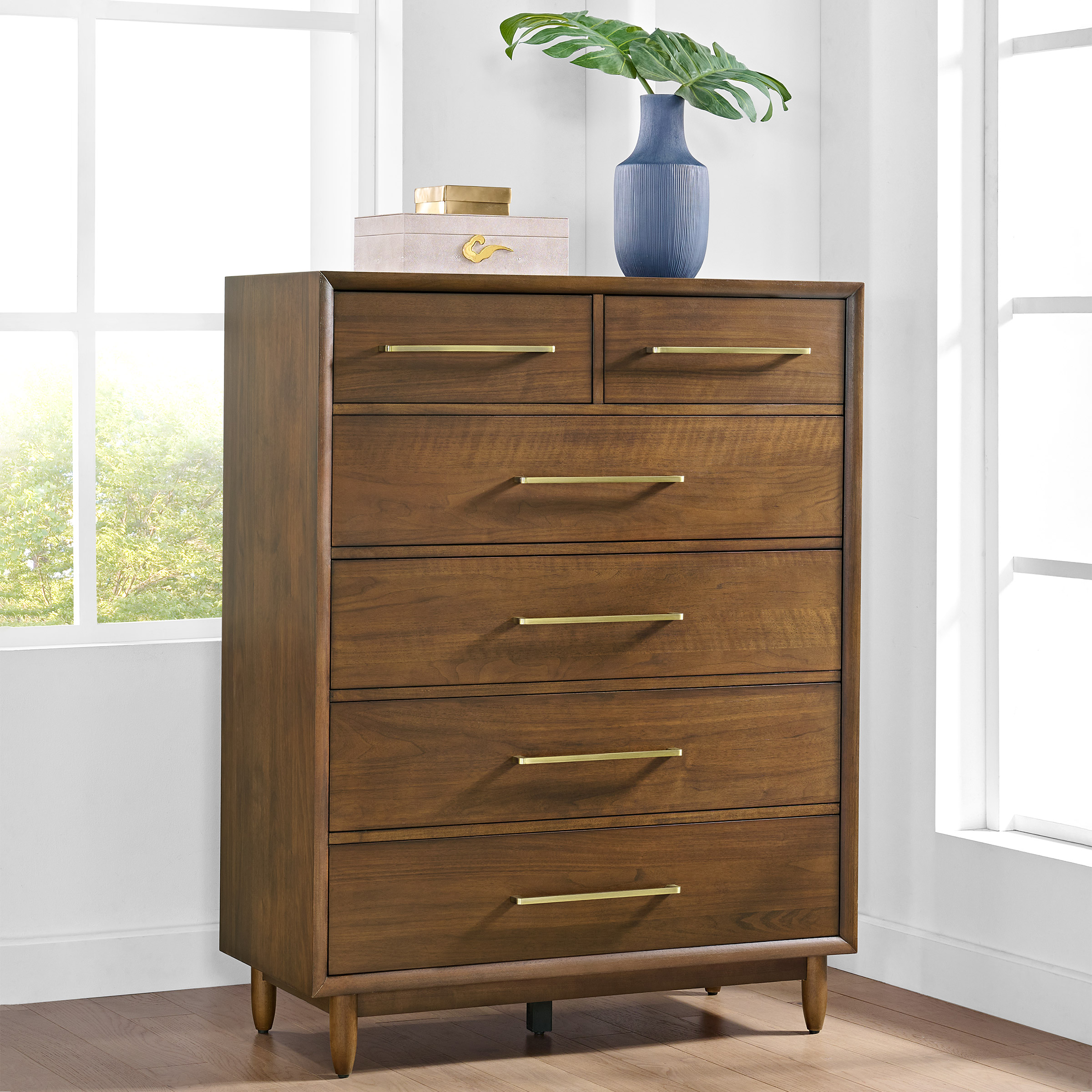- Constructed of Hardwood Solids and Walnut Veneers