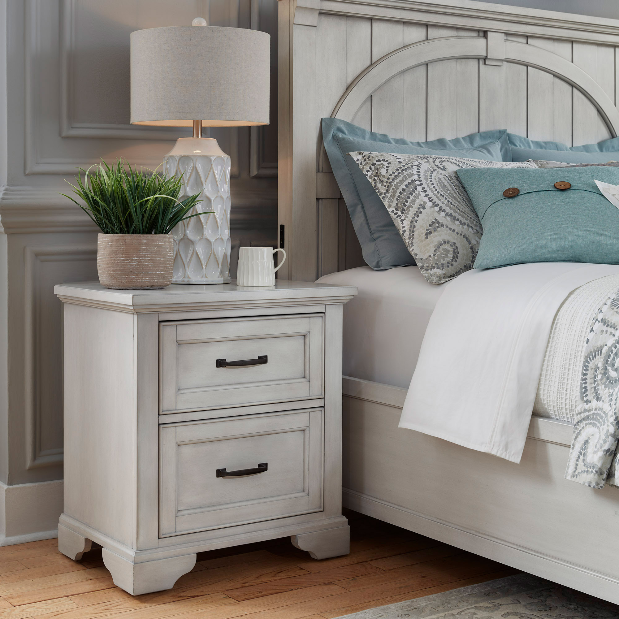 Transform your bedside into something special with the McKinley Nightstand. With a beautiful antique white finish accentuated with graphite toned hardware this smartly designed piece makes the perfect complement to any room. Features two spacious drawers for stowing away all your bedside essentials. Comes with two discrete power outlets and two convenient USB plug-ins for all your charging needs. Crafted with care for many years of use.