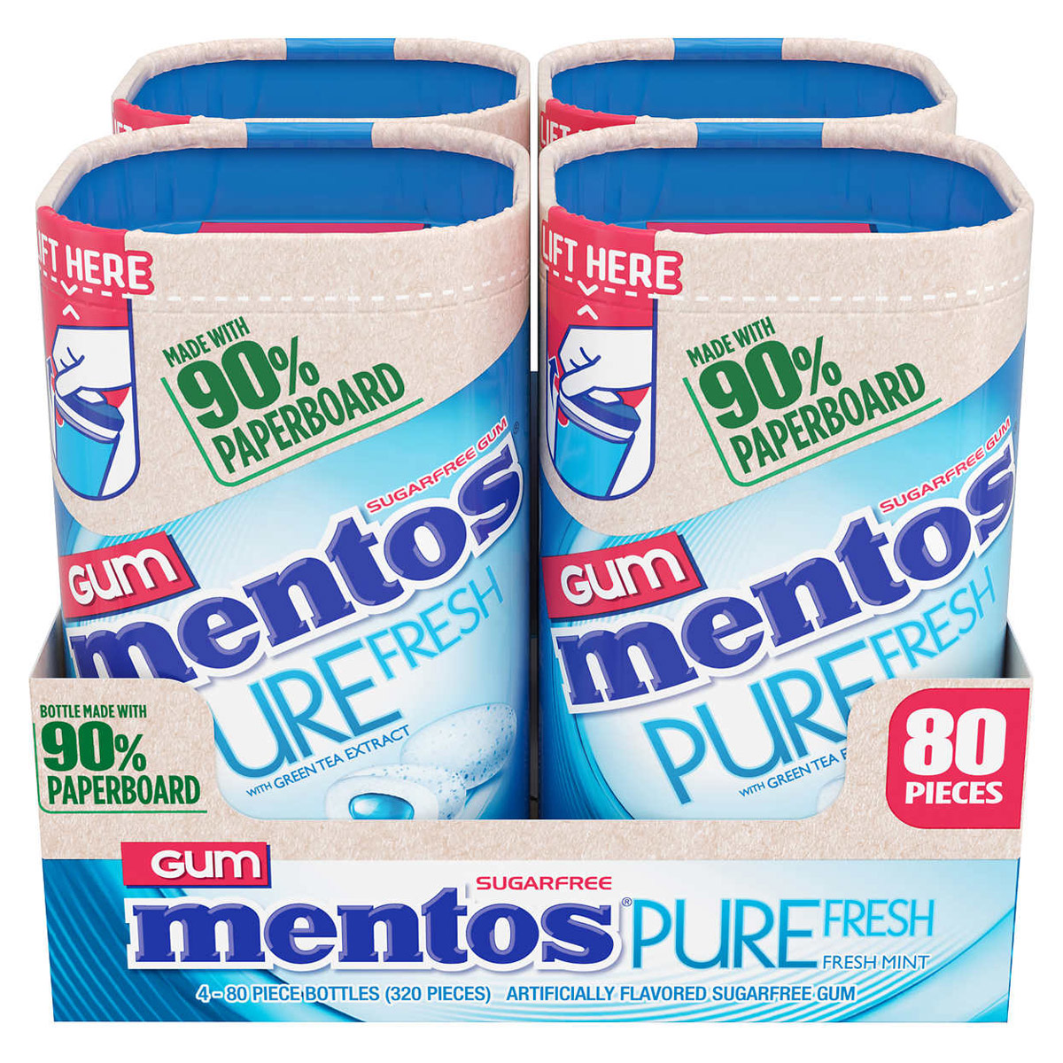 Mentos, Sugar Free Pure Fresh Gum, Freshmint with Green Tea Extract, 80 Pieces, 4-Count