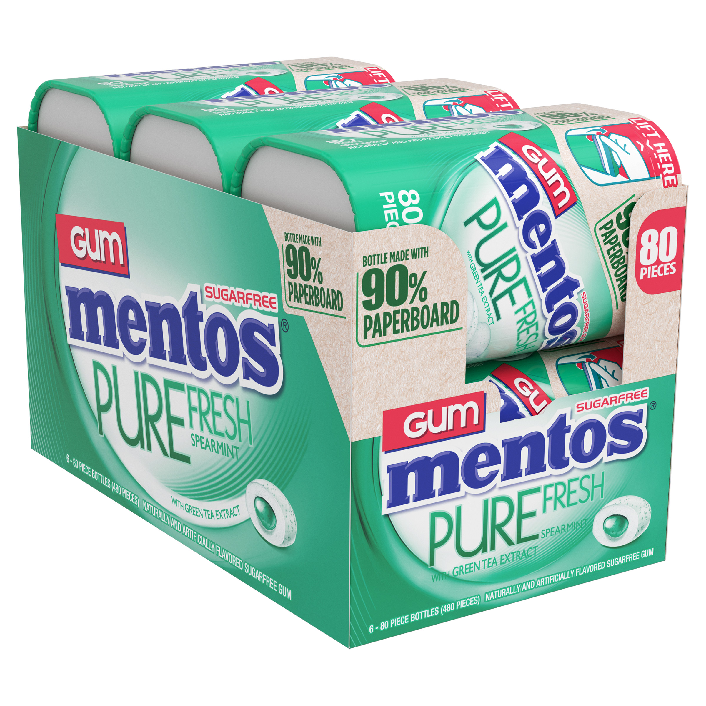 Mentos Sugar Free Pure Fresh Gum, Spearmint with Green Tea Extract, 80 Pieces, 6-count