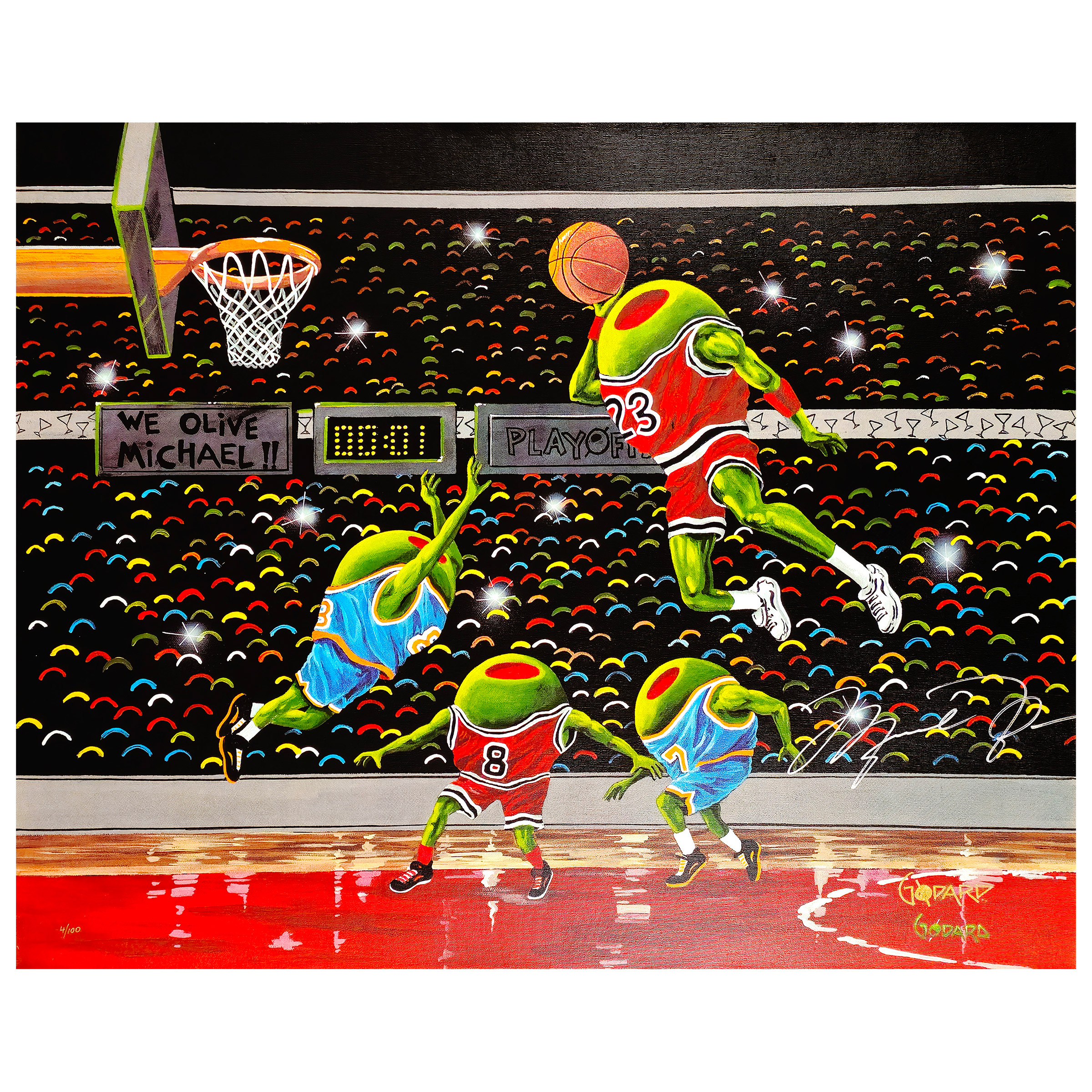 Michael Jordan Autographed Godard "We Olive Michael" Canvas #4/100 Chicago Bulls - Upper Deck Authenticated