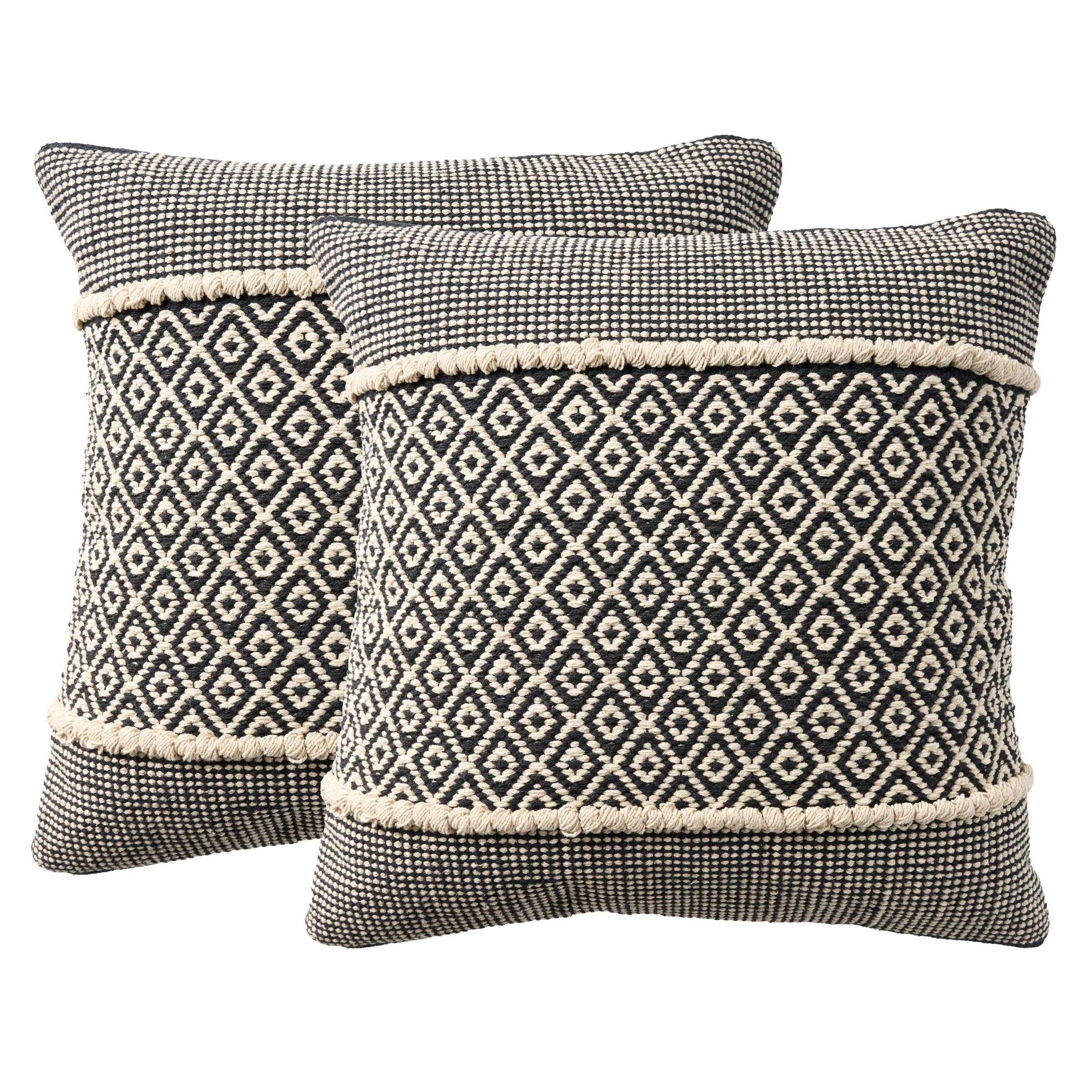 Add an instant boost of comfort and style to your sofa or other seating area with these Mina Victory throw pillows. These pillows boast delightfully textured accents like tufted poms and fringe edges that add depth and visual appeal. Choose from a range of simple yet sophisticated patterns that easily complement a variety of décor styles.