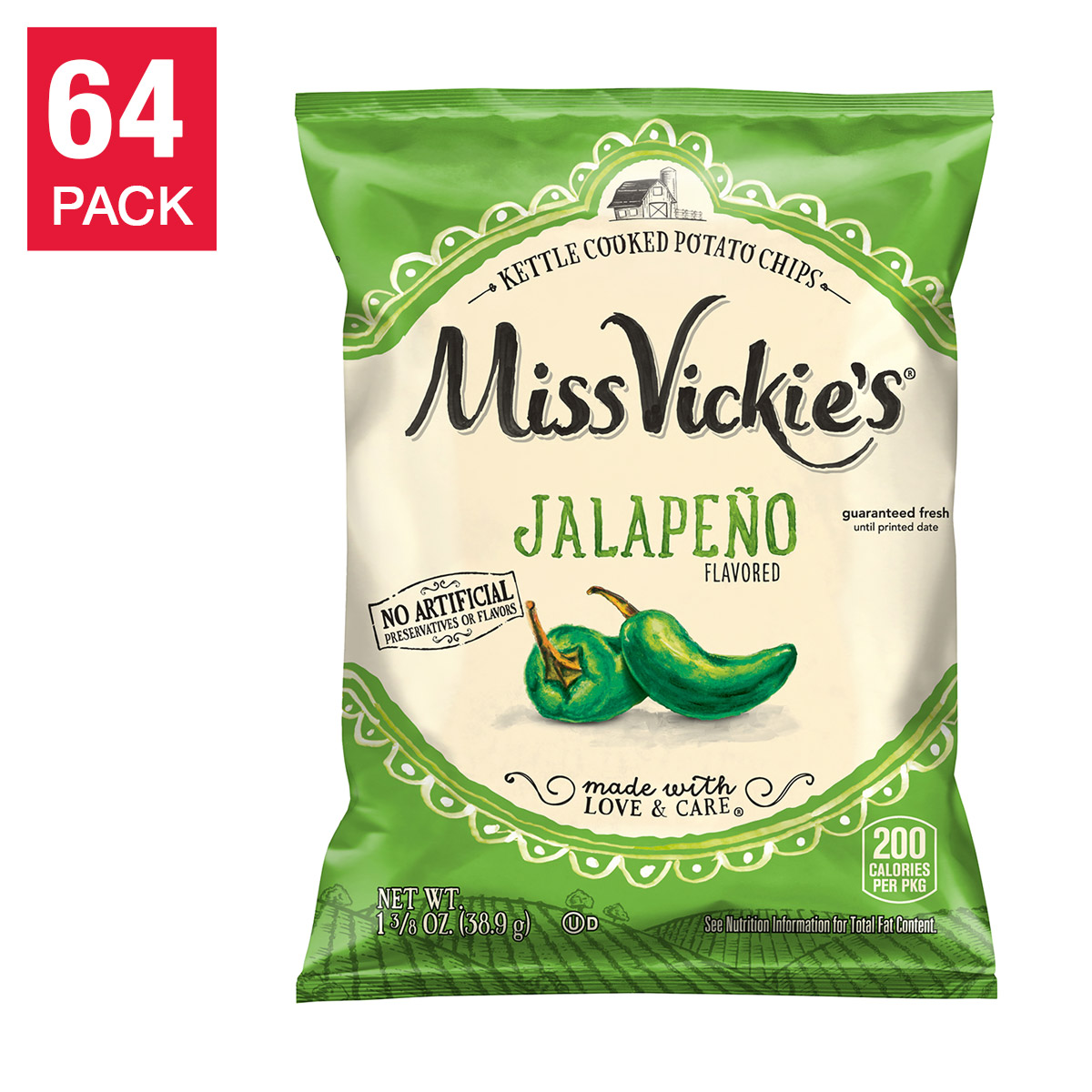 Miss Vickie’s Kettle Cooked Potato Chips, Jalapeno, 1.38 oz, 64-count