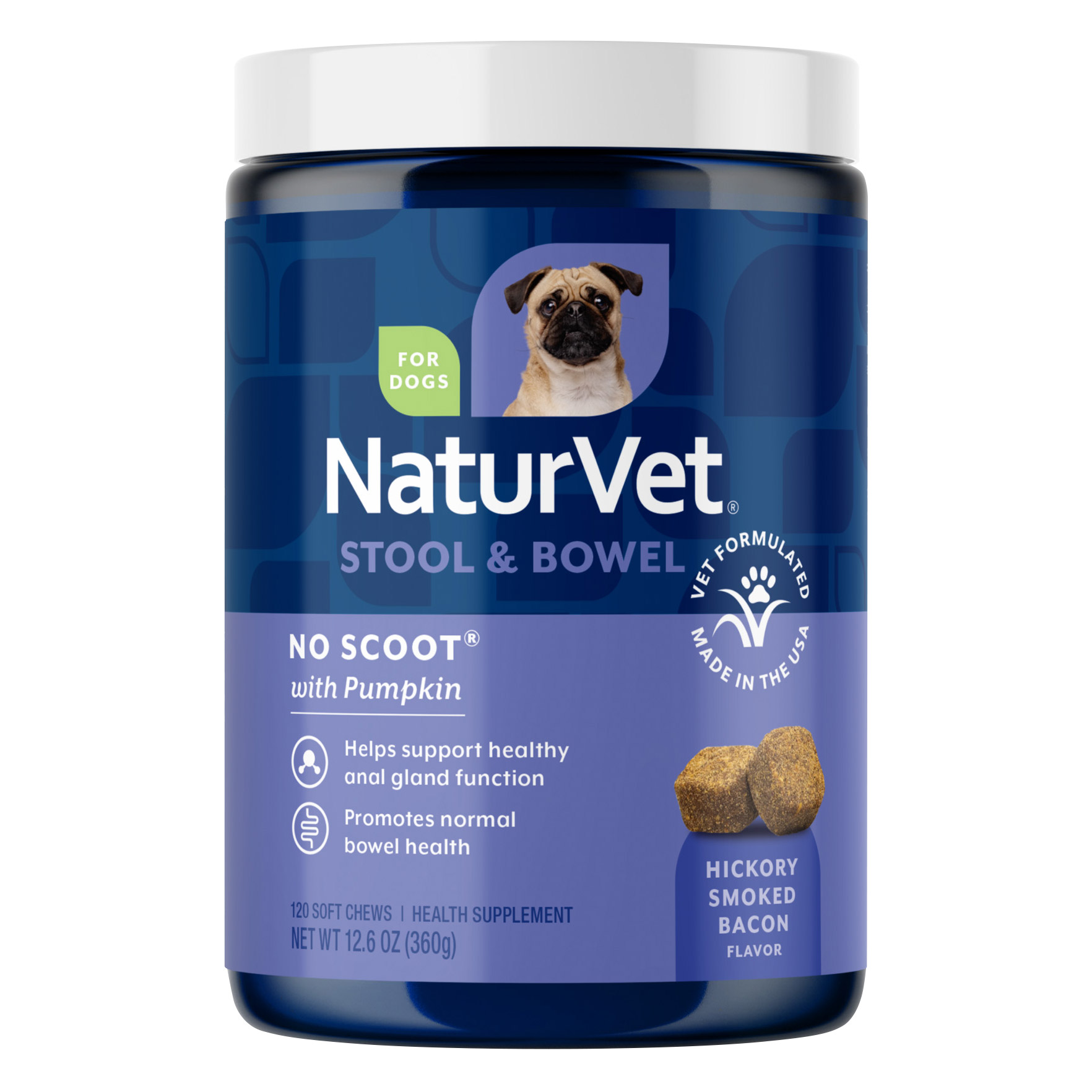 NaturVet No Scoot Stool & Bowel Supplements for Dogs, Hickory Smoked Bacon Flavor, 120-count