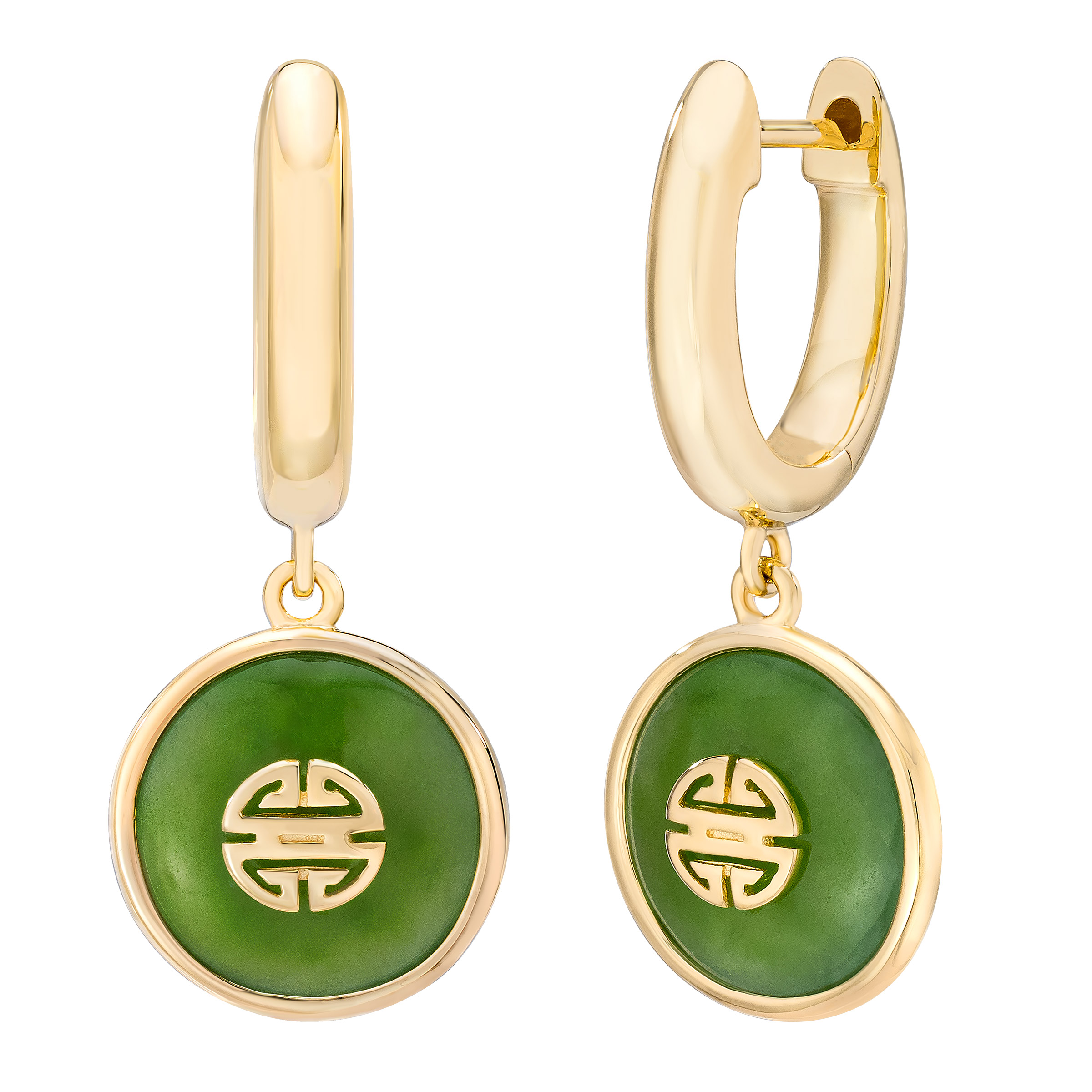 Nephrite Green Jade 18kt Yellow Gold Dangle Earrings
