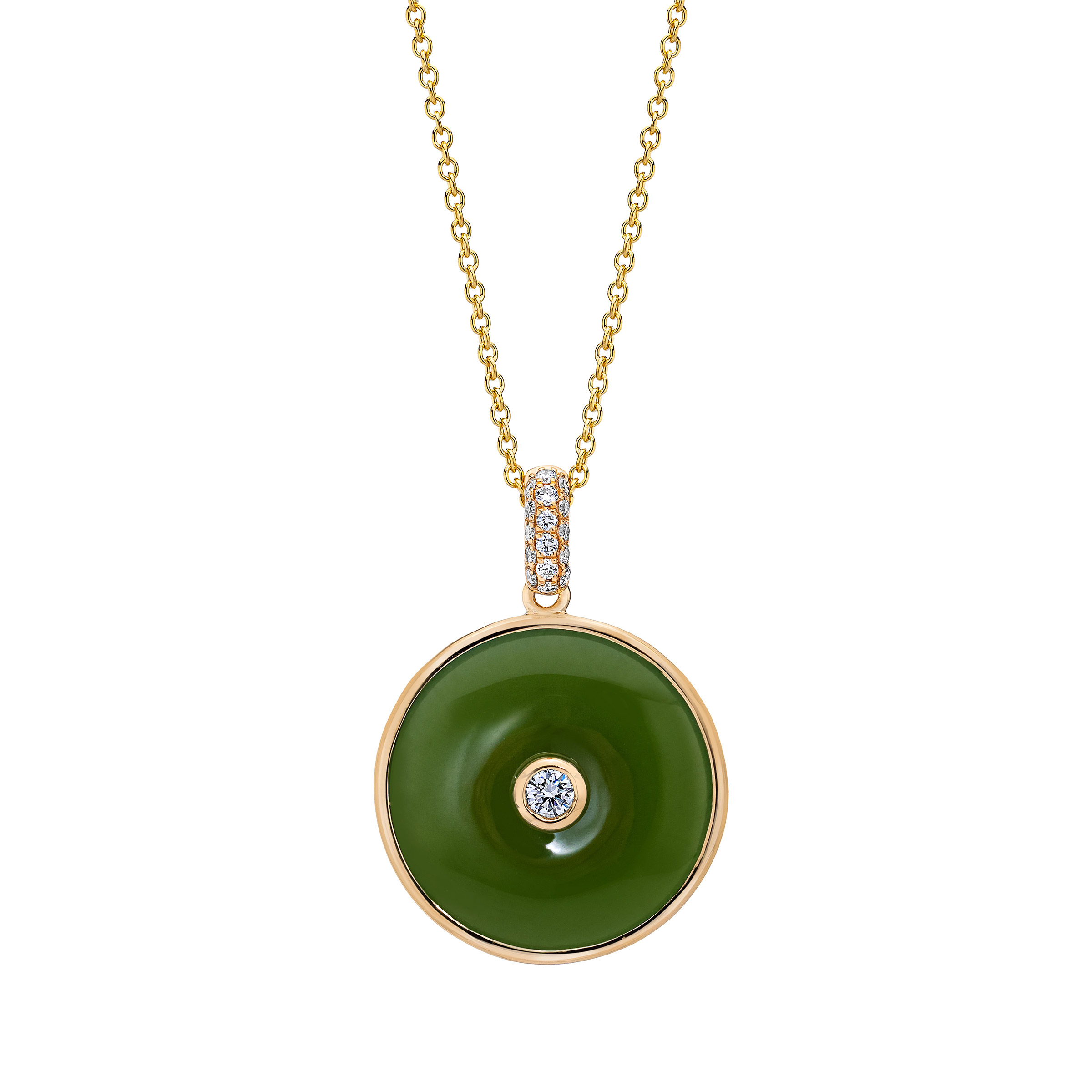 Nephrite Green Jade and Diamond 14kt Yellow Gold Pendant