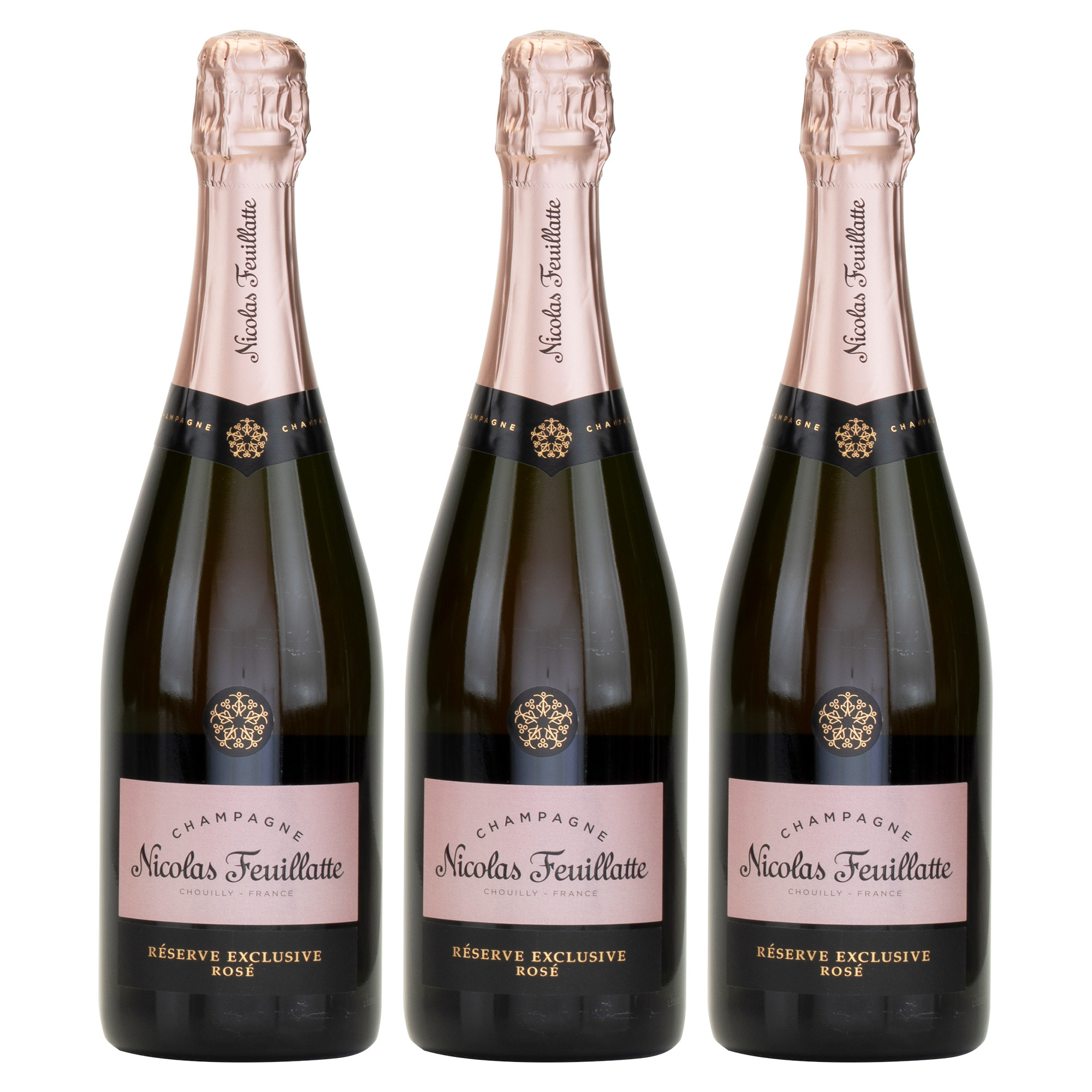 Nicolas Feuillatte Reserve Exclusive Brut Rosé Champagne 750 ml 3-pack CA ONLY