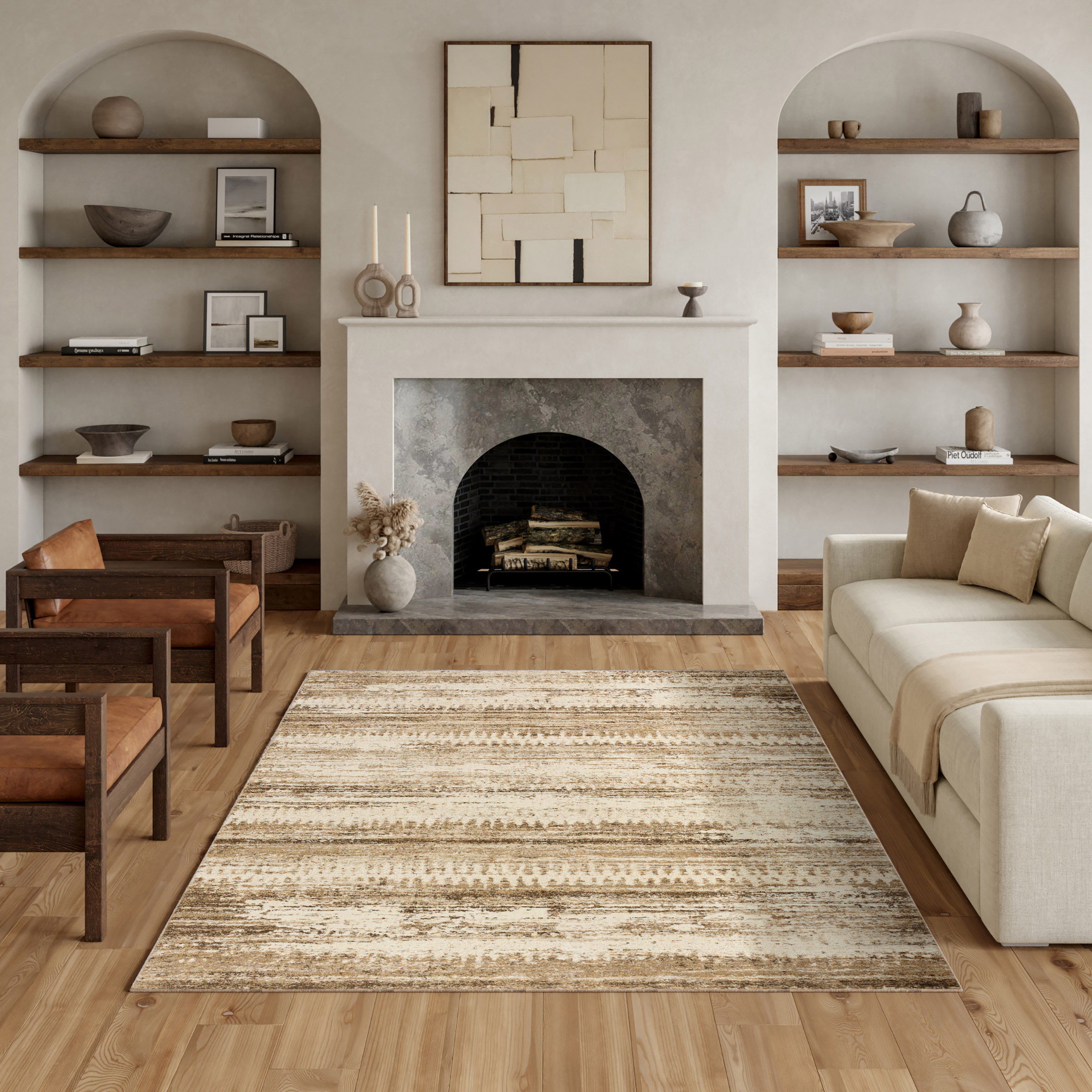 Bring a unique sense of style to your space with this modern rug from the Briar collection. The abstract design adds an intriguing pop of pattern with its artfully distressed finish, made cozy with a neutral beige palette. Sustainably crafted from recycled Polyester fibers for a stylish, eco-friendly way to decorate any room.