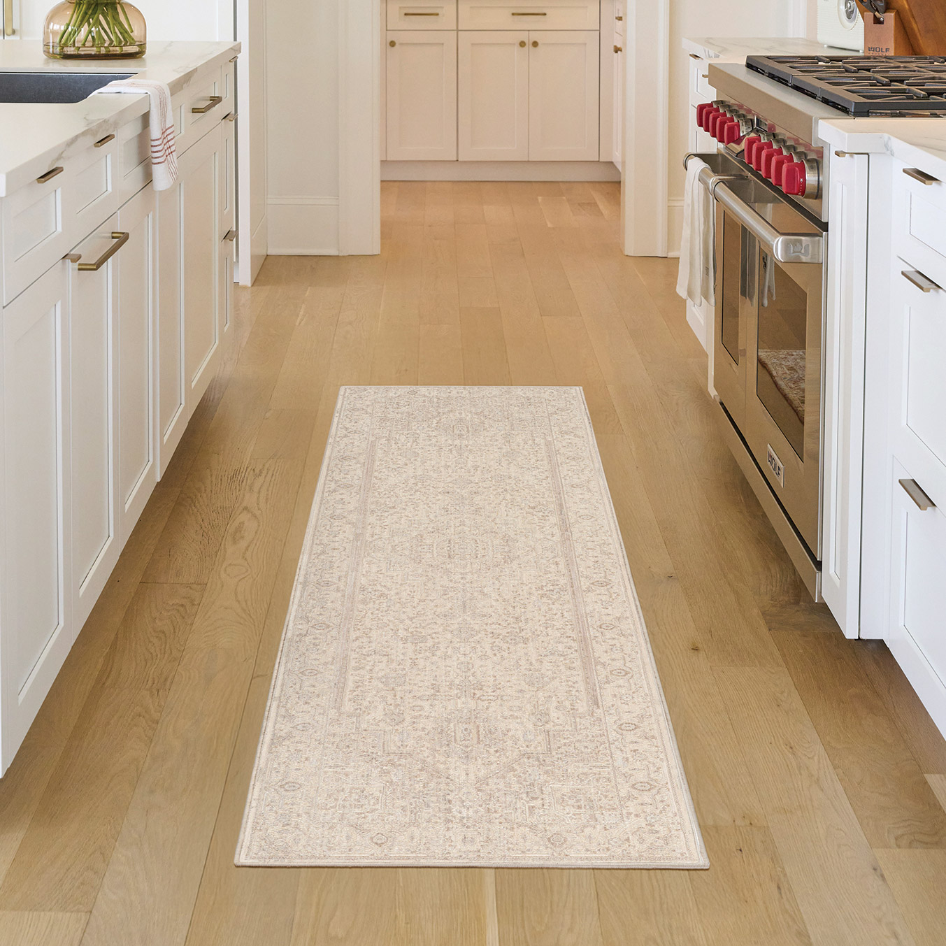 With its central medallion and intricate border, this vintage-inspired Seraphine rug invites an elegant touch to your space. The neutral beige color palette makes it easy to decorate a variety of rooms, including the living room and bedroom. Made from a soft, durable blend of Polyester and Viscose. Features: