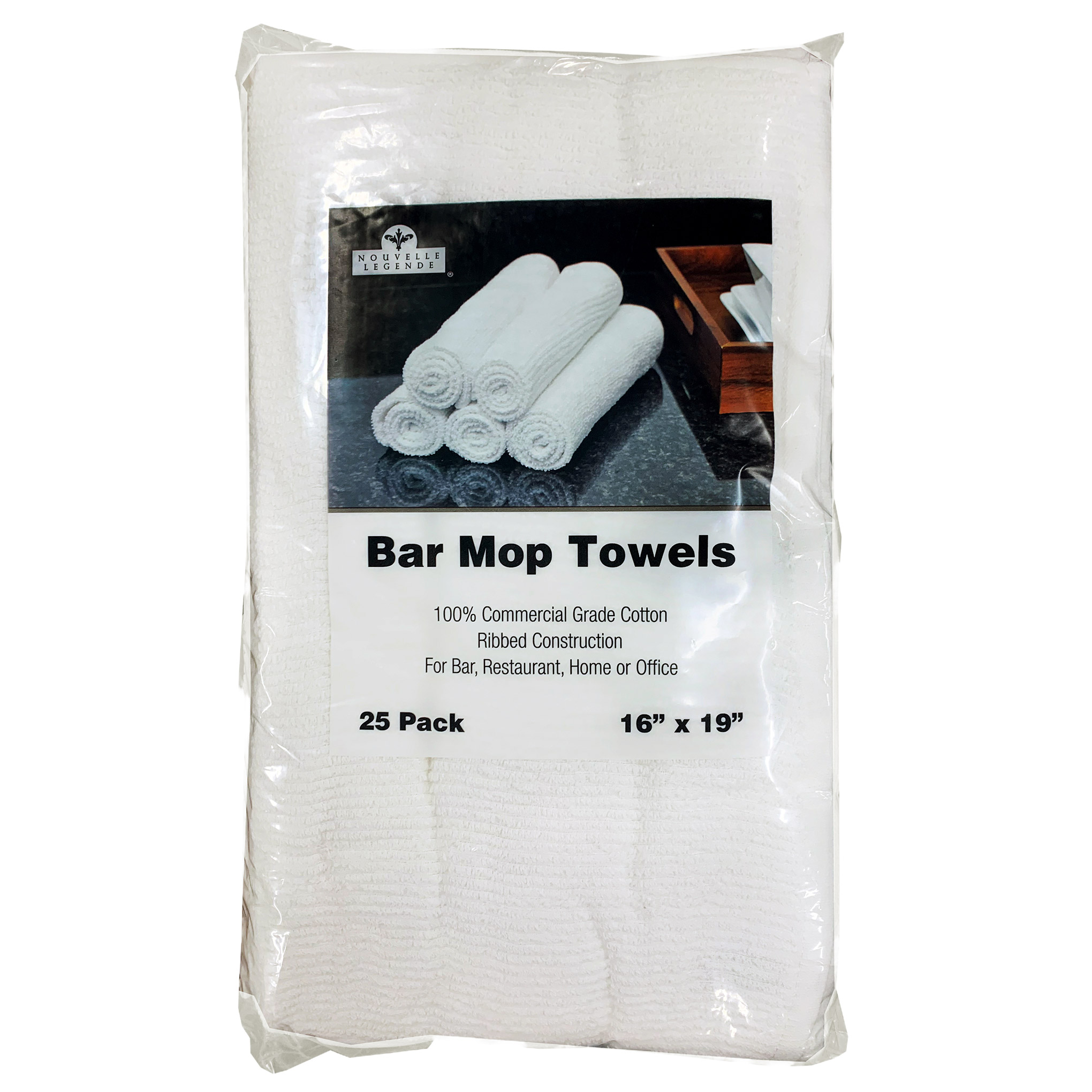 Nouvelle Legende Ribbed 100% Cotton Bar Towel, White, 16 in x 19 in, 25-count